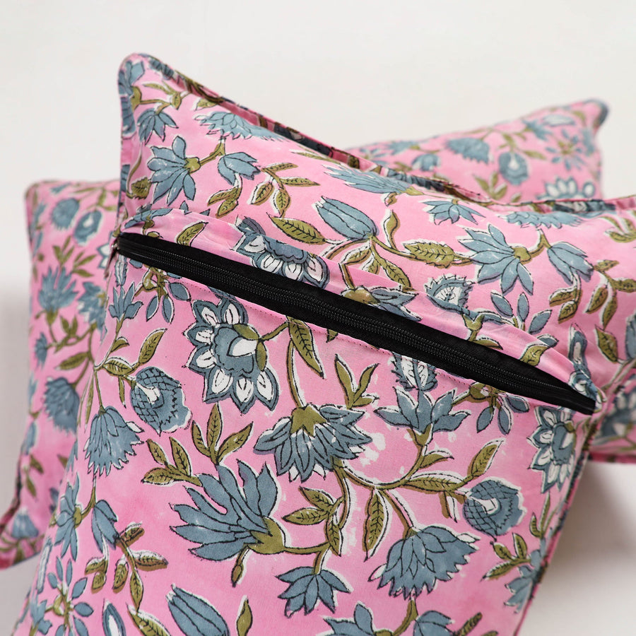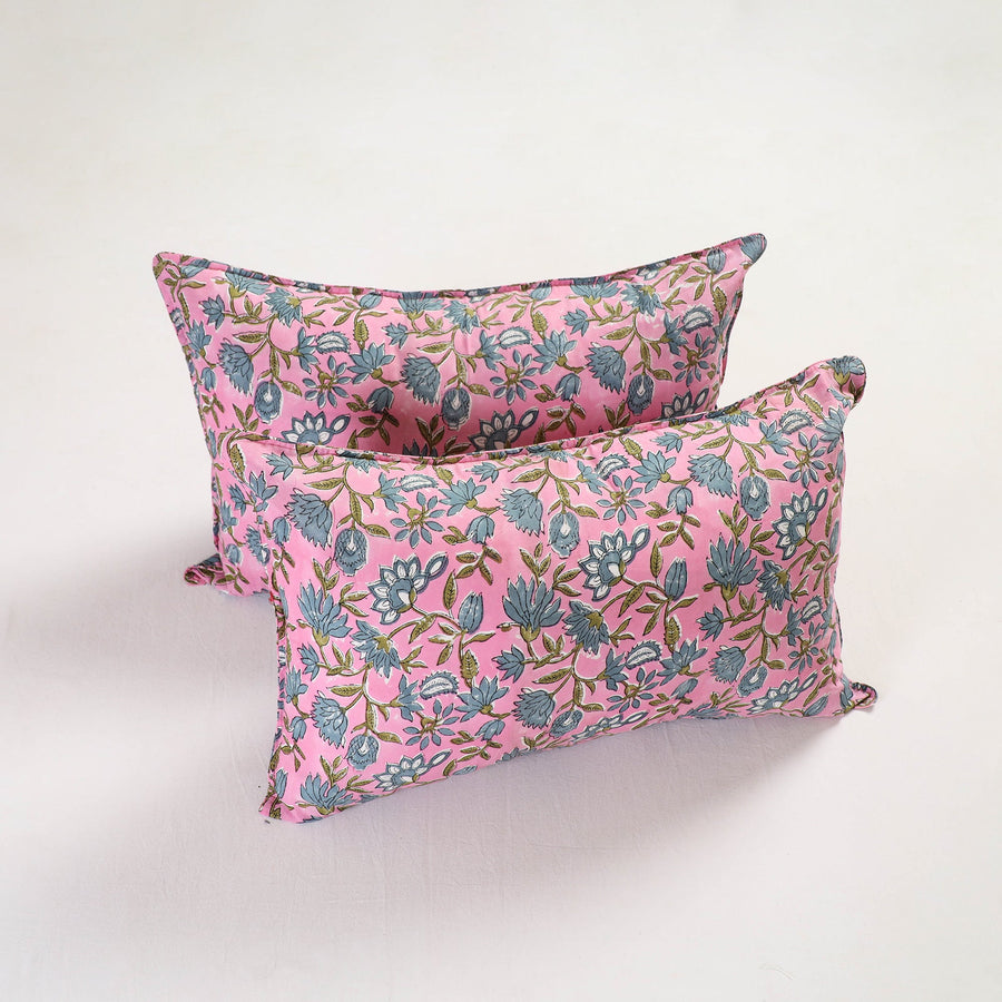 Enhance your home decor with this exquisite set of 2 pink Sanganeri block print pillow covers, crafted using traditional block printing techniques. Celebrated for its intricate patterns and rich heritage, Sanganeri art brings timeless elegance and sustainability to your living space. Perfect for sofas and beds.