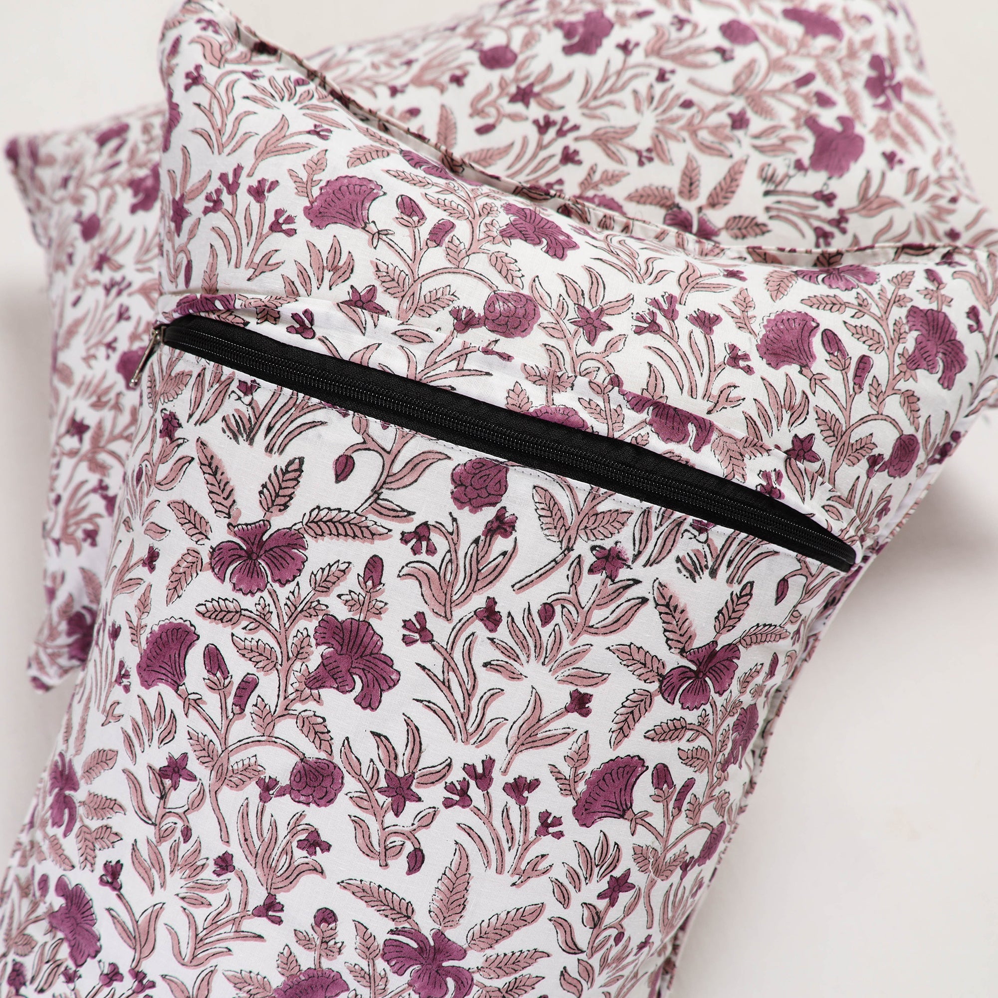Enhance your home decor with this exquisite set of 2 white Sanganeri block print pillow covers, crafted using traditional block printing techniques. Celebrated for its intricate patterns and rich heritage, Sanganeri art brings timeless elegance and sustainability to your living space. Perfect for sofas and beds.