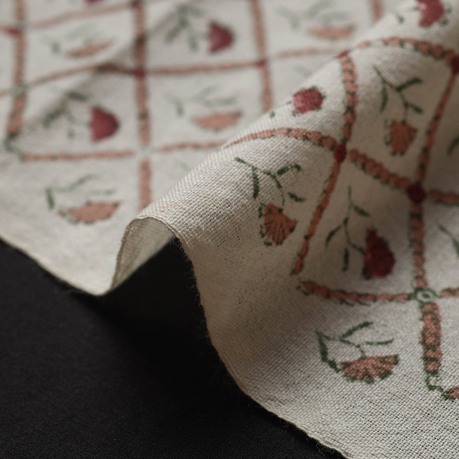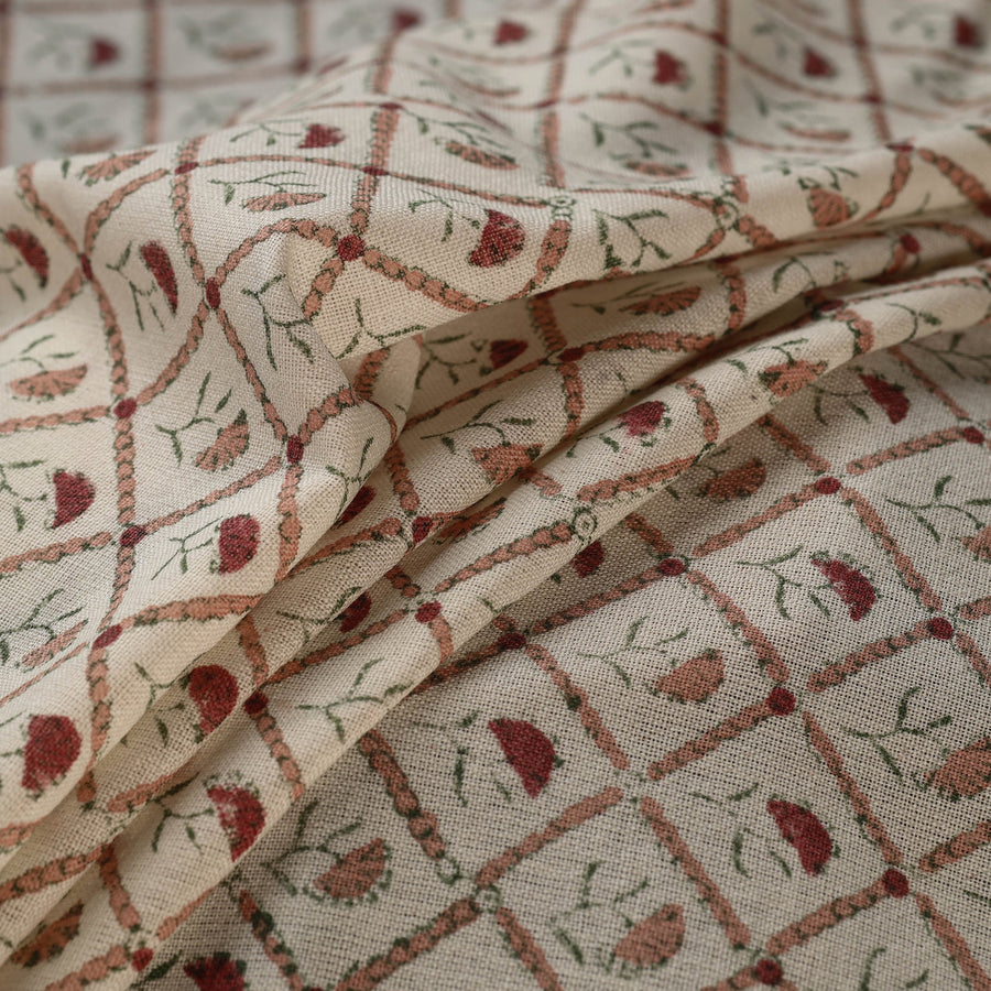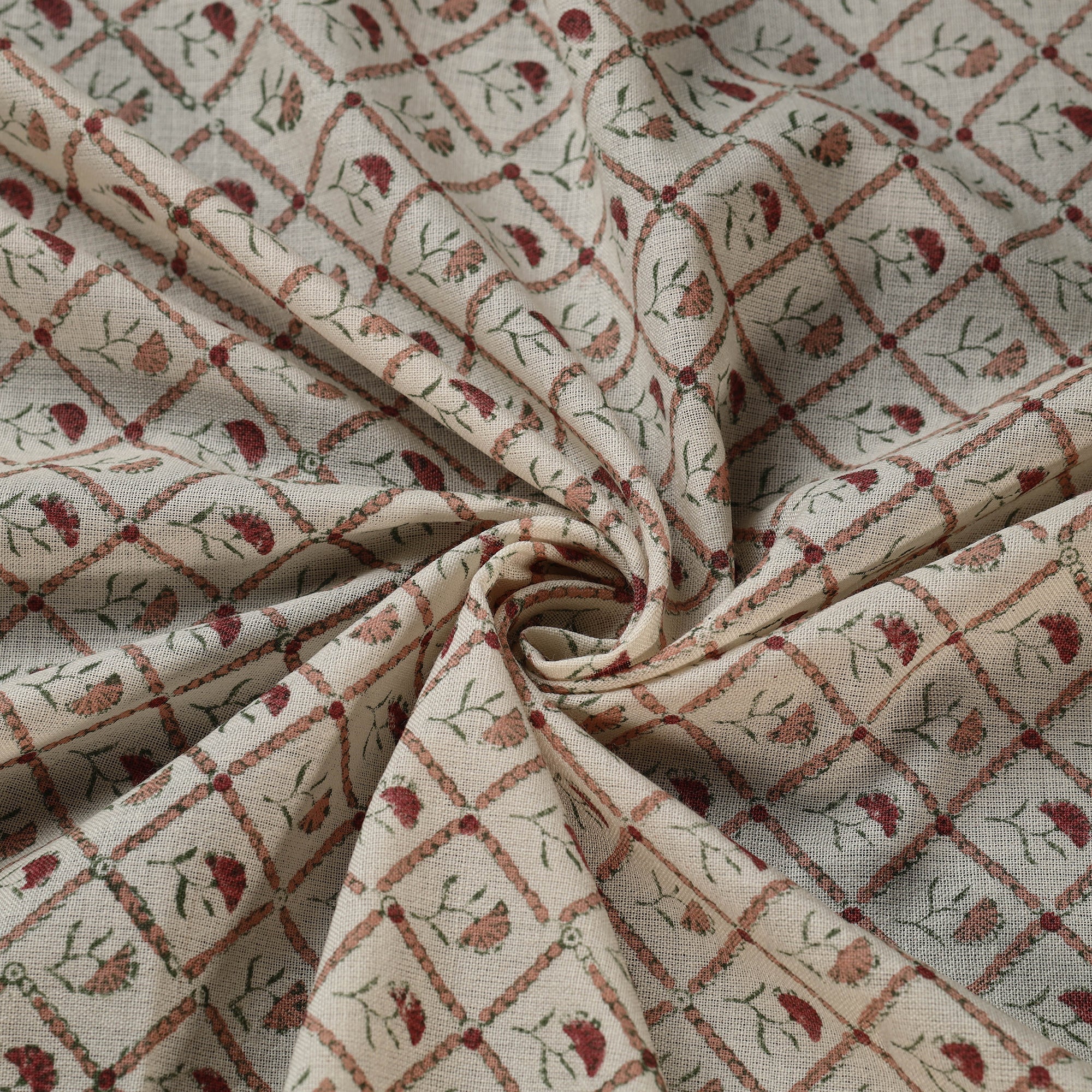 Beige - Hand Block Print Cotton Sanganeri Fabric 08