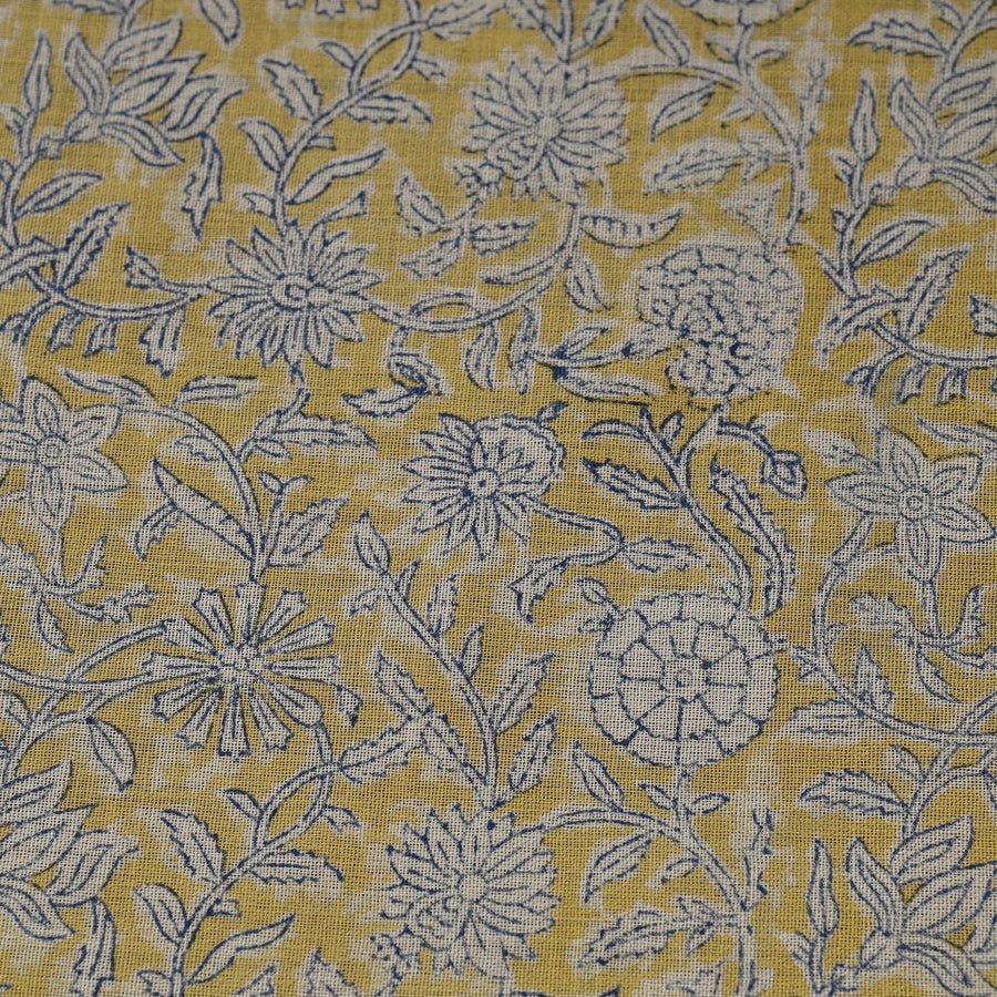 Experience the warmth and beauty of yellow sanganeri block print pure wool fabric. Sanganeri is traditional hand-block printing craft from Rajasthan, is known for its intricate designs and vibrant colors. This fine wool fabric, colored using bleed-free VAT dyes, ensures durability and lasting vibrancy. perfect for winter wear and home décor.