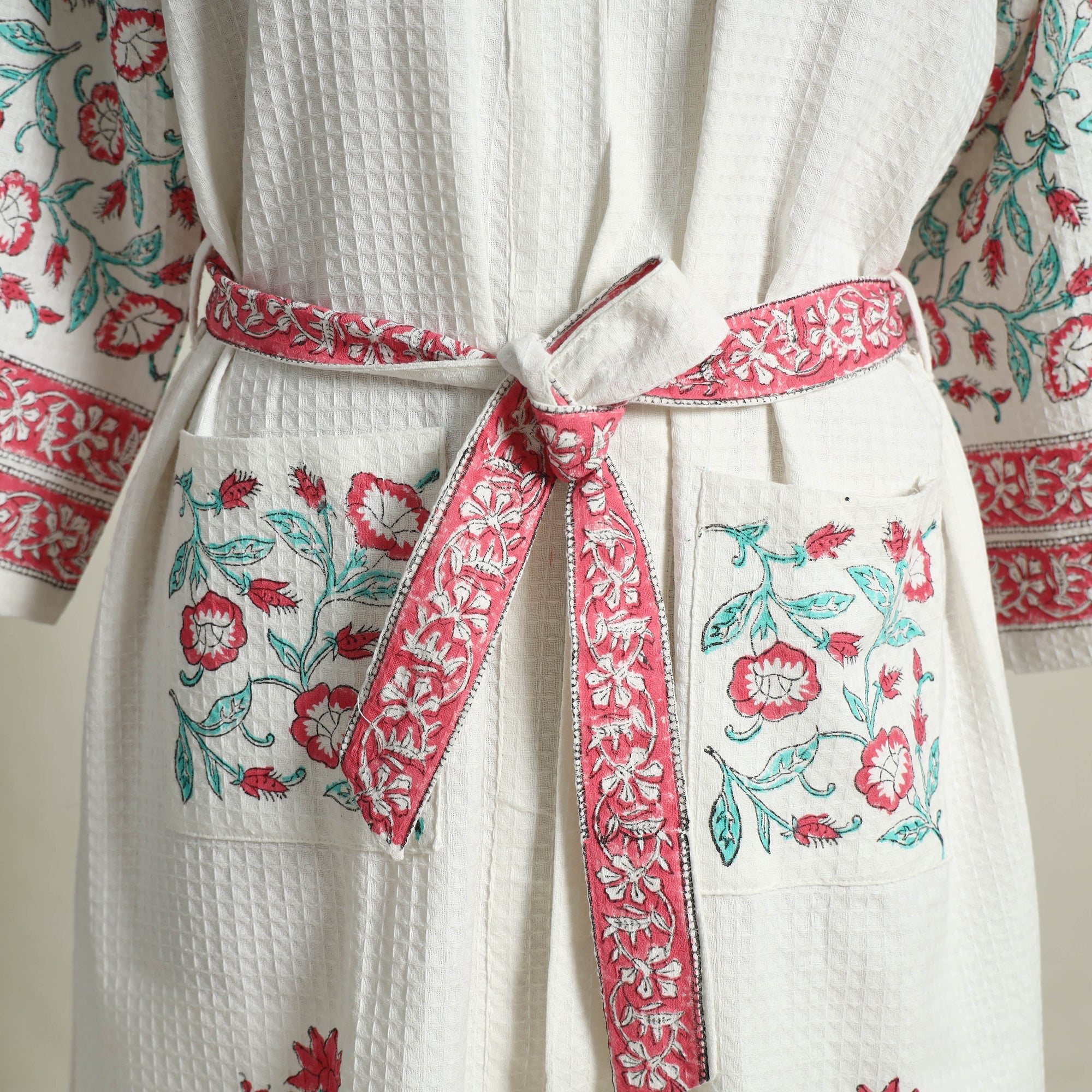 • Buy Sanganeri Block Print Waffle Weave Handwoven Bath Robe