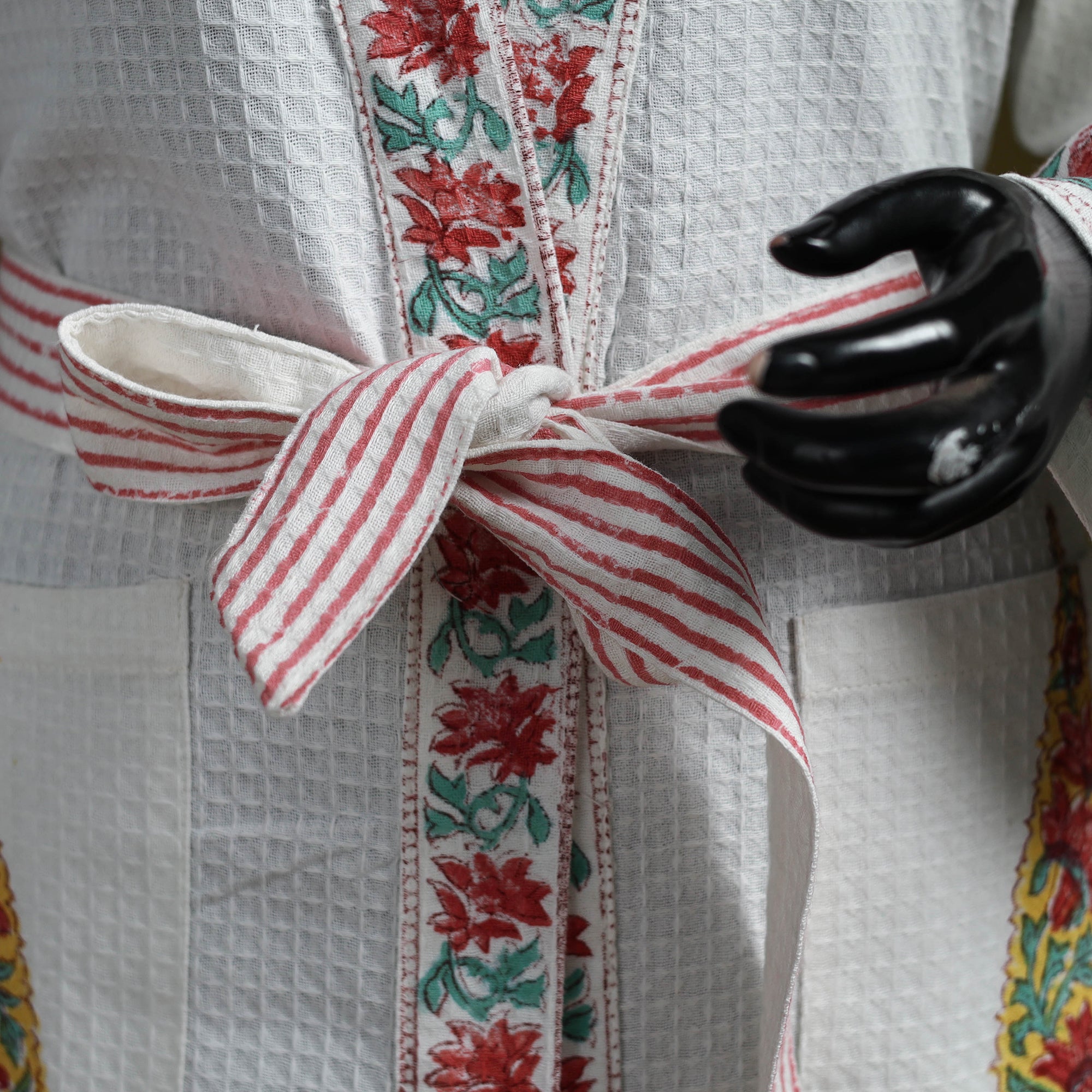 • Sanganeri waffle weave handwoven bath robe 10 - handcrafted