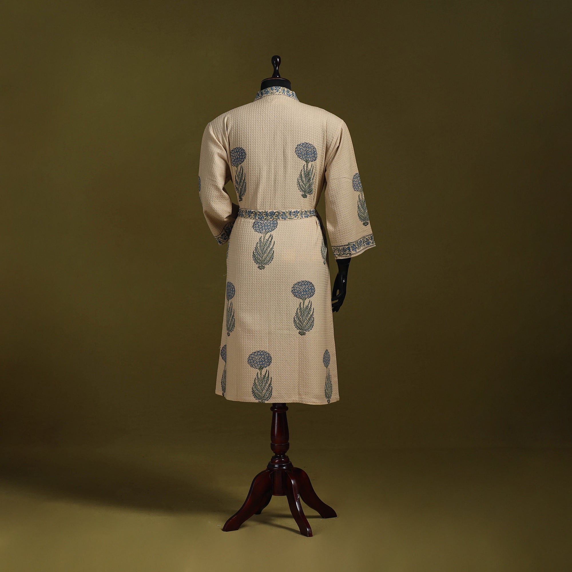 Sanganeri Block Print Waffle Weave Handwoven Bath Robe 17