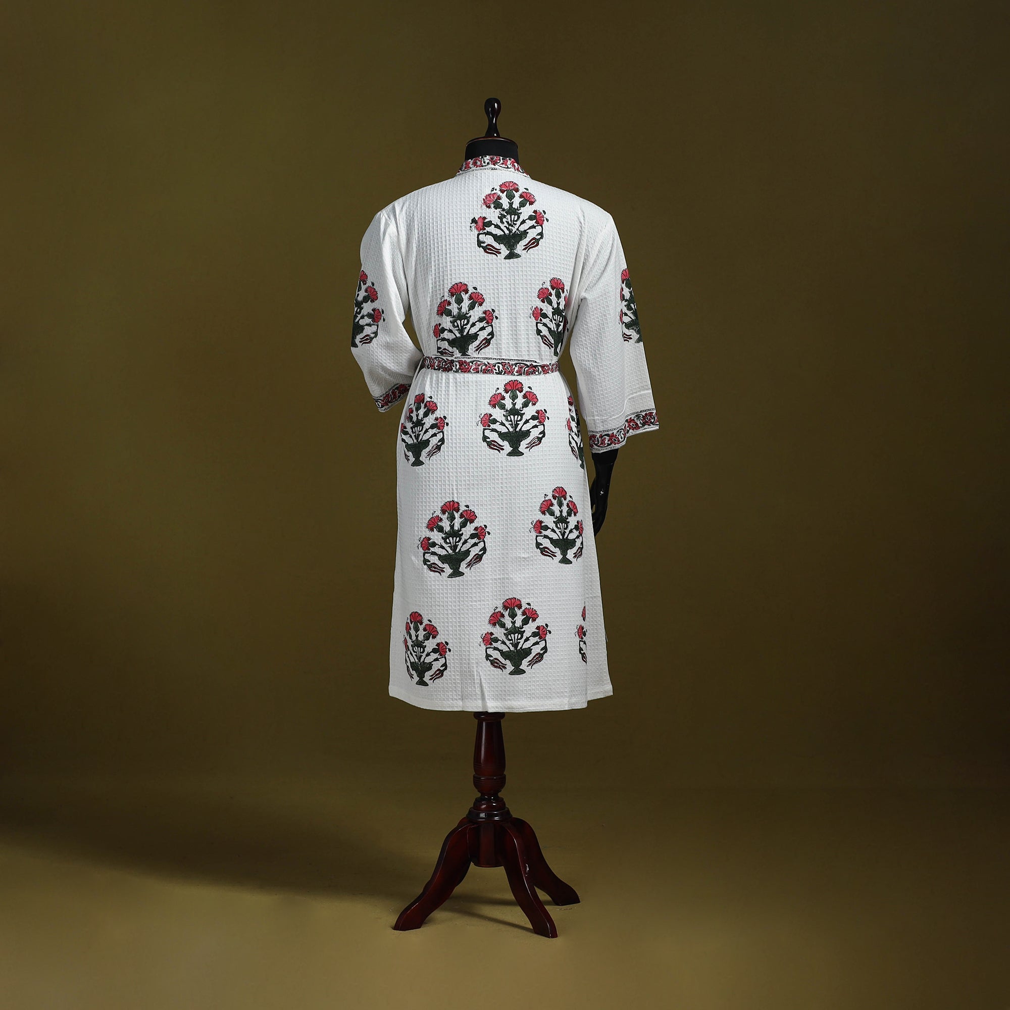 Sanganeri Block Print Waffle Weave Handwoven Bath Robe 26