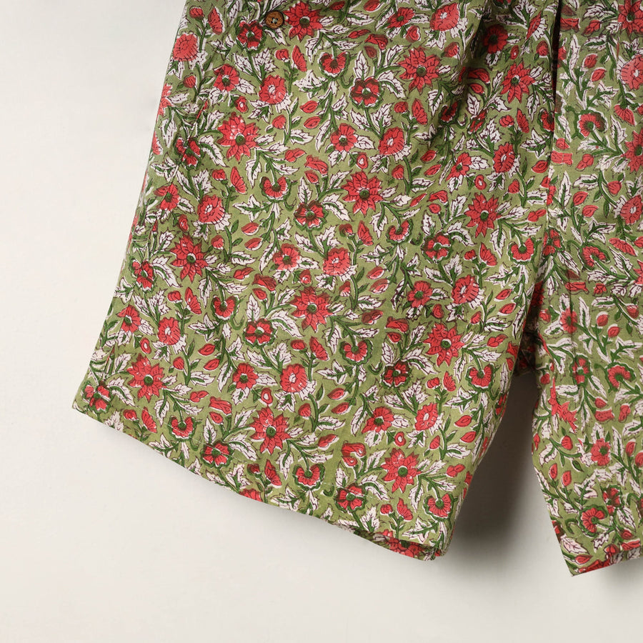Material Composition : 100% Cotton Green Cotton handmade fabric with Sanganeri hand block printing Ultrasoft and durable inner waistband Button placket with front fly open Side pockets with button plackets Label free for all day comfort