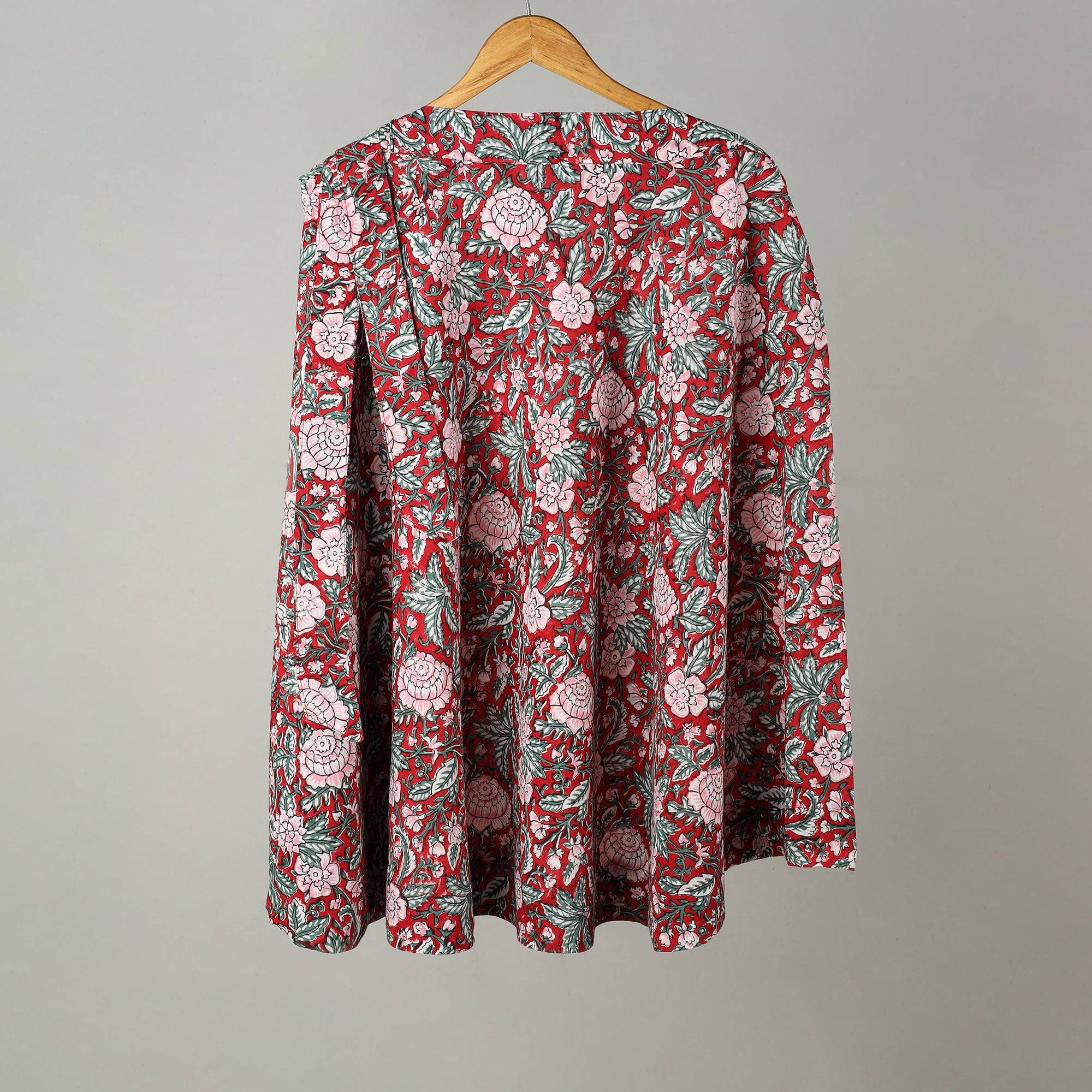 Celebrate the vibrant artistry of Rajasthan with this red sanganeri block printed cotton wrap around skirt. Made from cotton, this skirt features intricate block prints created using traditional Sanganeri techniques. With a comfortable waist tie-up closure, it’s perfect for everyday wear or special occasions.