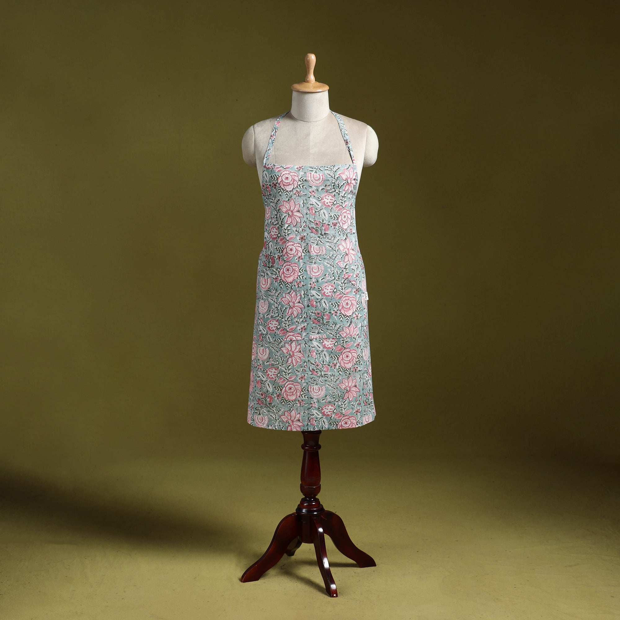 | Material | Sanganeri floral apron features hand block prints that bring a handcrafted touch to your everyday kitchen routine. Made from cotton using the traditional block printing technique from Jaipur, Rajasthan, a craft that has been practised for more than 500 years and continues to be carried forward by skilled artisans. The delicate floral patterns are printed using intricately hand-carved wooden blocks. It comes with an adjustable neck strap, allowing you to easily adjust the fit according to your comfort. A spacious front pocket adds convenience, making it useful for keeping small kitchen essentials close while cooking or baking. Lightweight and easy to wear, this apron helps protect your clothes while you work in the kitchen. |