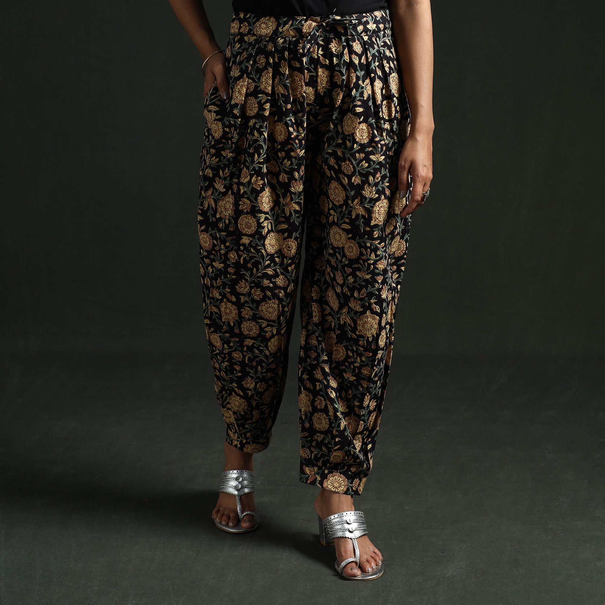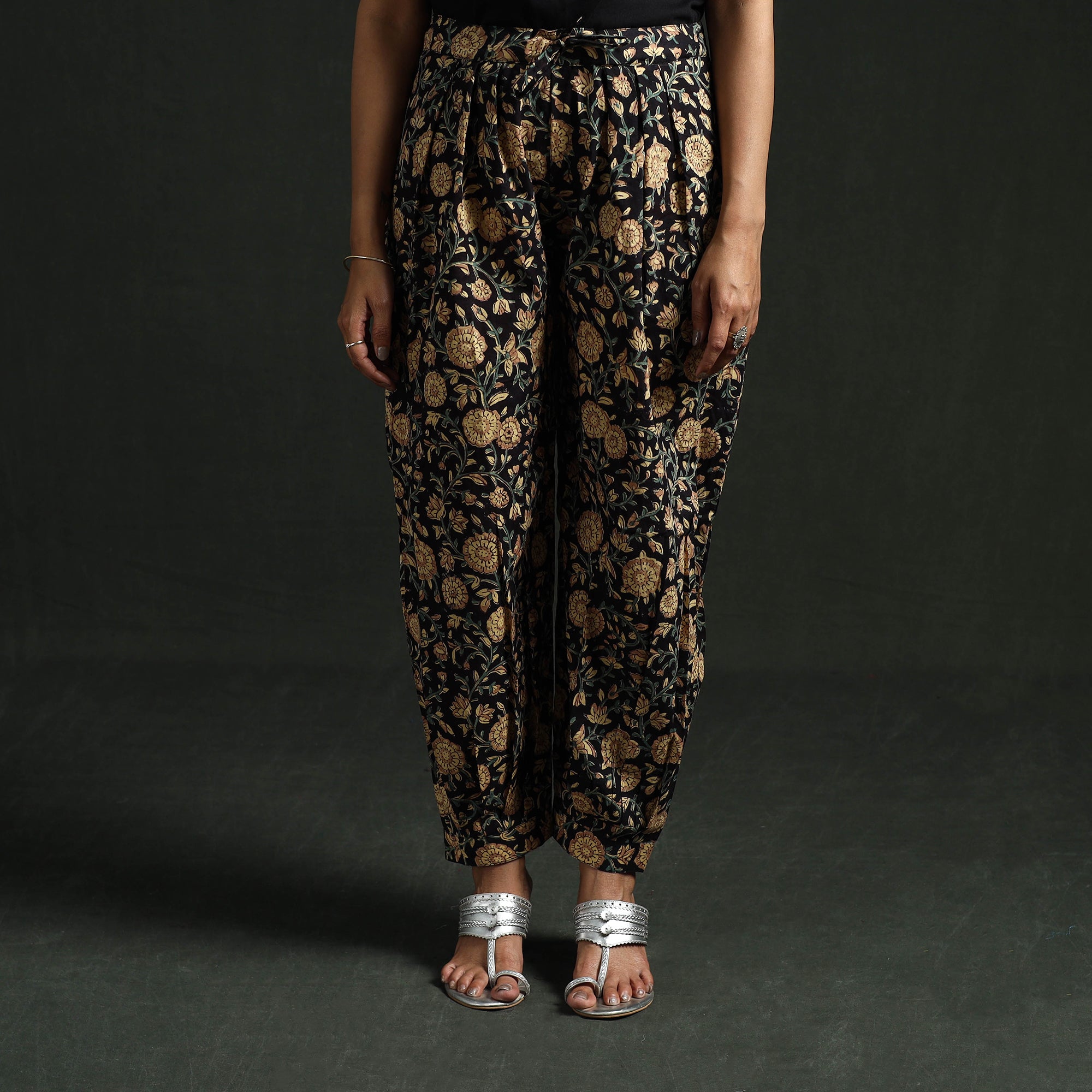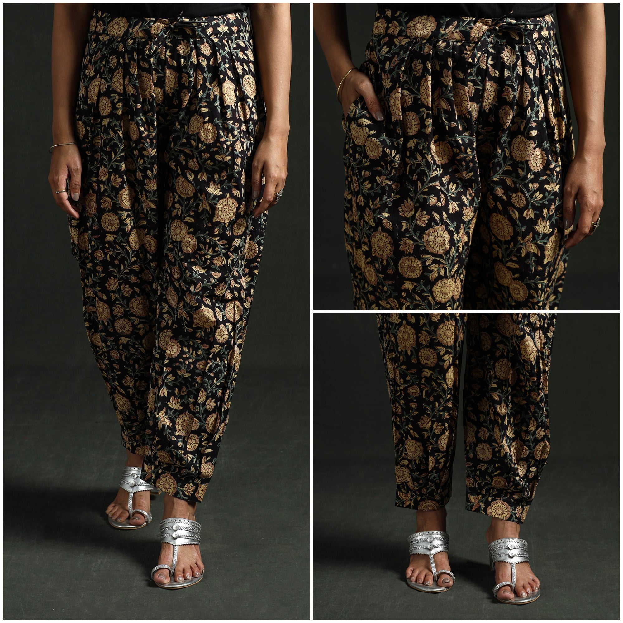 | Material | Sanganeri pure cotton women’s afghani salwar is crafted using a traditional centuries-old block printing technique that has been practiced for over 500 years and is known for its fine detailing and delicate floral patterns. The designs are printed using hand-carved wooden blocks and bleed-free VAT dyes. It features an elasticated waist, drawstring and two side pockets to ensure all-day comfort and practicality. Complete the look by pairing it with your favourite kurta. |