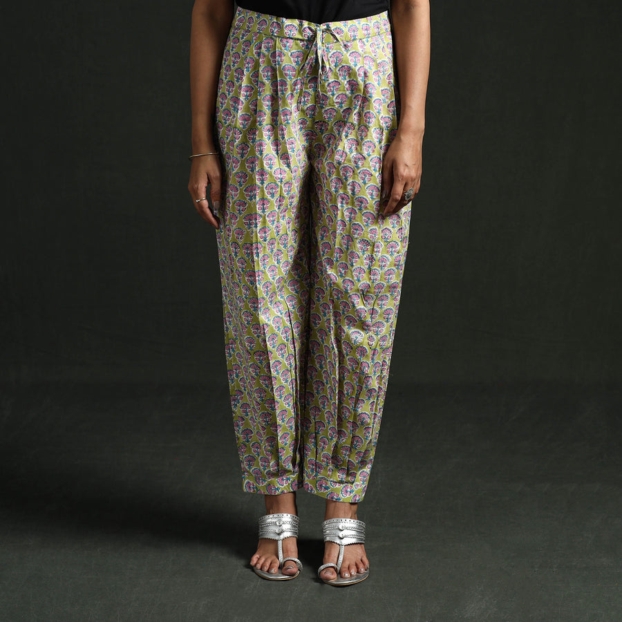 | Material | Sanganeri pure cotton women’s afghani salwar is crafted using a traditional centuries-old block printing technique that has been practiced for over 500 years and is known for its fine detailing and delicate floral patterns. The designs are printed using hand-carved wooden blocks and bleed-free VAT dyes. It features an elasticated waist, drawstring and two side pockets to ensure all-day comfort and practicality. Complete the look by pairing it with your favourite kurta. |