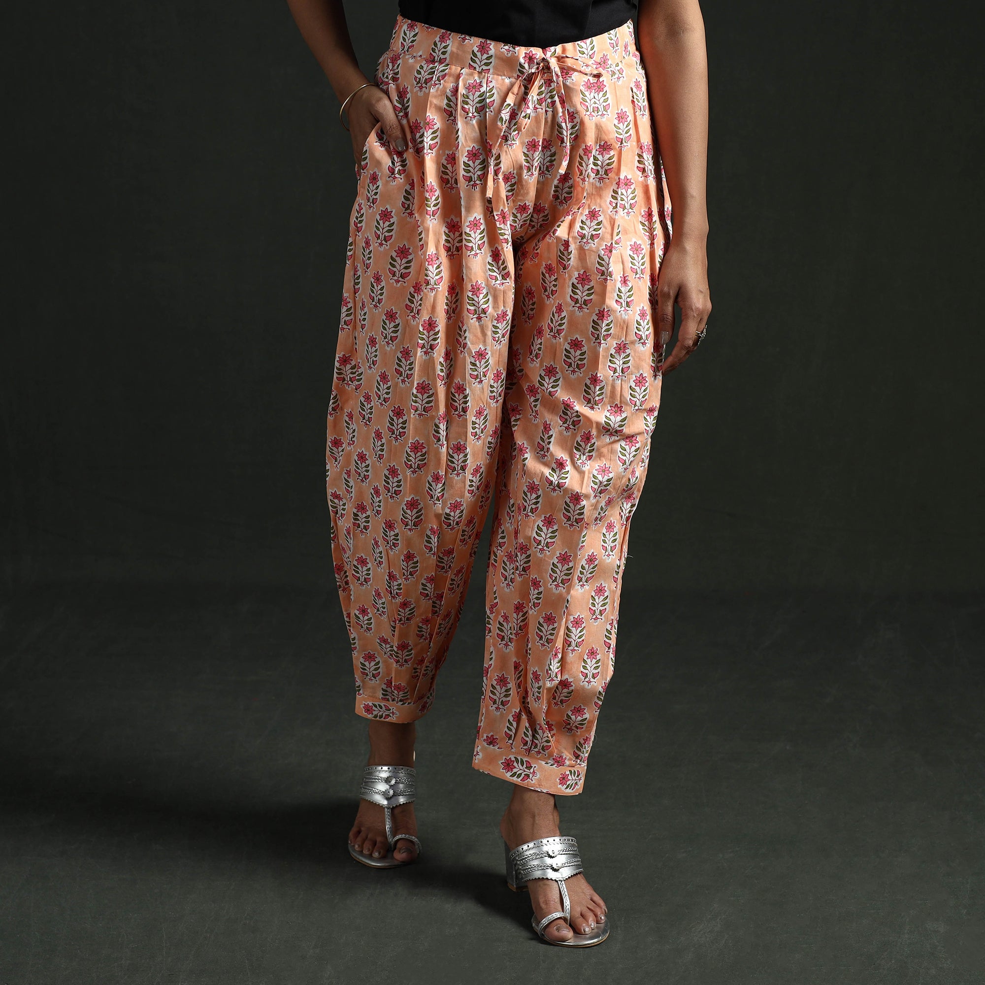 Sanganeri pure cotton women’s afghani salwar is crafted using a traditional centuries-old block printing technique that has been practiced for over 500 years and is known for its fine detailing and delicate floral patterns. The designs are printed using hand-carved wooden blocks and bleed-free VAT dyes. It features an elasticated waist, drawstring and two side pockets to ensure all-day comfort and practicality. Complete the look by pairing it with your favourite kurta.