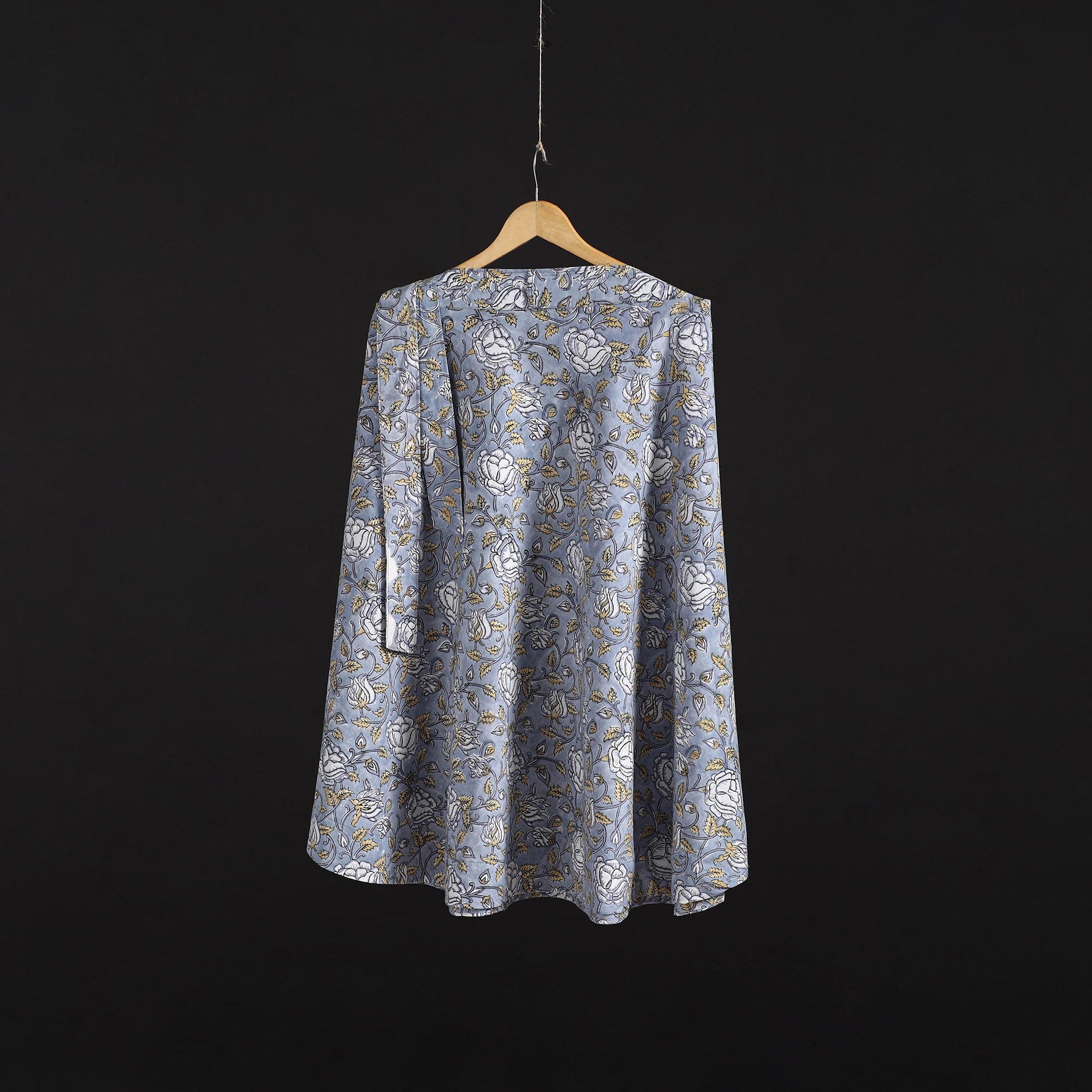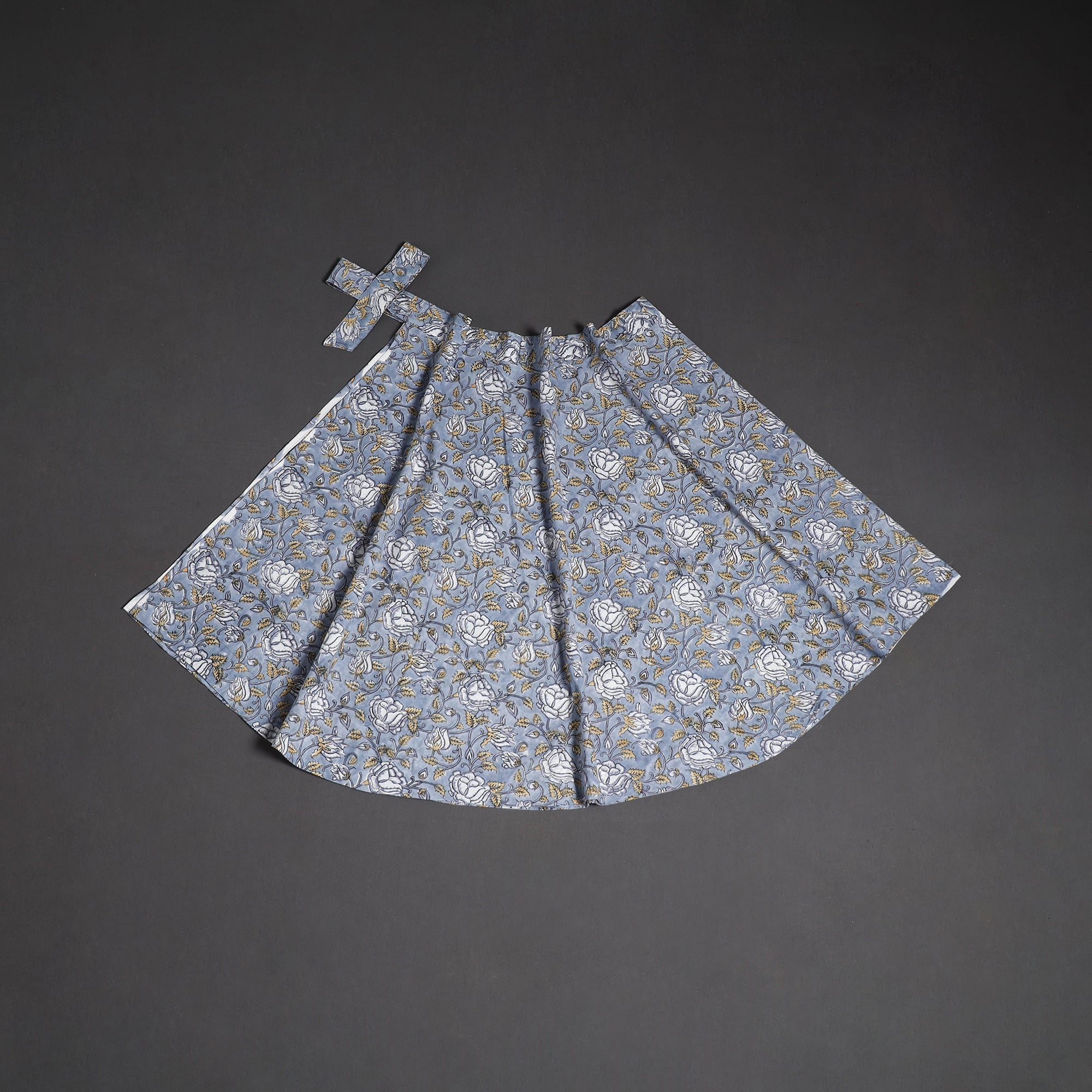 Blue sanganeri hand block print cotton wrap-around skirt for women's, featuring an easy tie-up waist closure for a comfortable, adjustable fit. This centuries-old block printing technique has been practiced for over 500 years and is known for its fine detailing and delicate floral motifs. The designs are printed using traditional hand-carved wooden blocks and bleed-free VAT dyes. The wrap style makes it effortless to wear and flattering for all body types. Perfect for daily wear, vacations or relaxed outings.