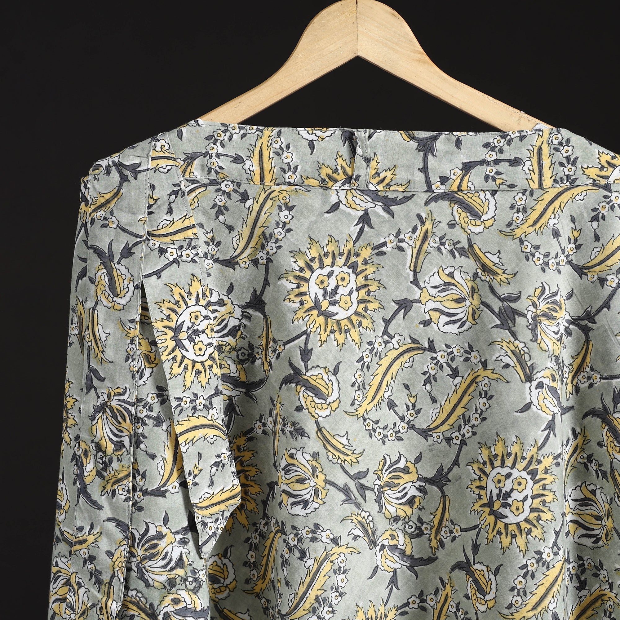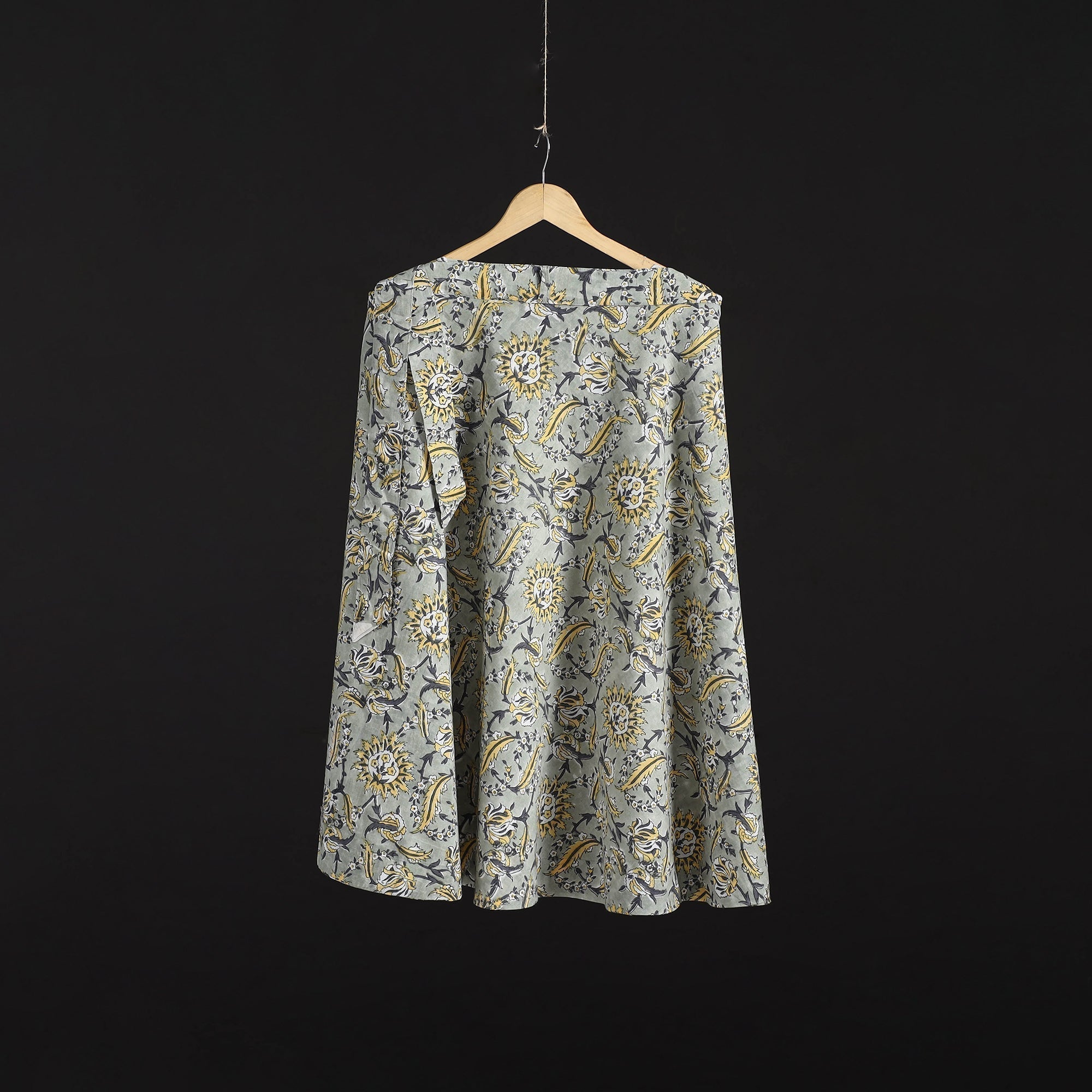 | Material | Grey sanganeri hand block print cotton wrap-around skirt for women's, featuring an easy tie-up waist closure for a comfortable, adjustable fit. This centuries-old block printing technique has been practiced for over 500 years and is known for its fine detailing and delicate floral motifs. The designs are printed using traditional hand-carved wooden blocks and bleed-free VAT dyes. The wrap style makes it effortless to wear and flattering for all body types. Perfect for daily wear, vacations or relaxed outings. |