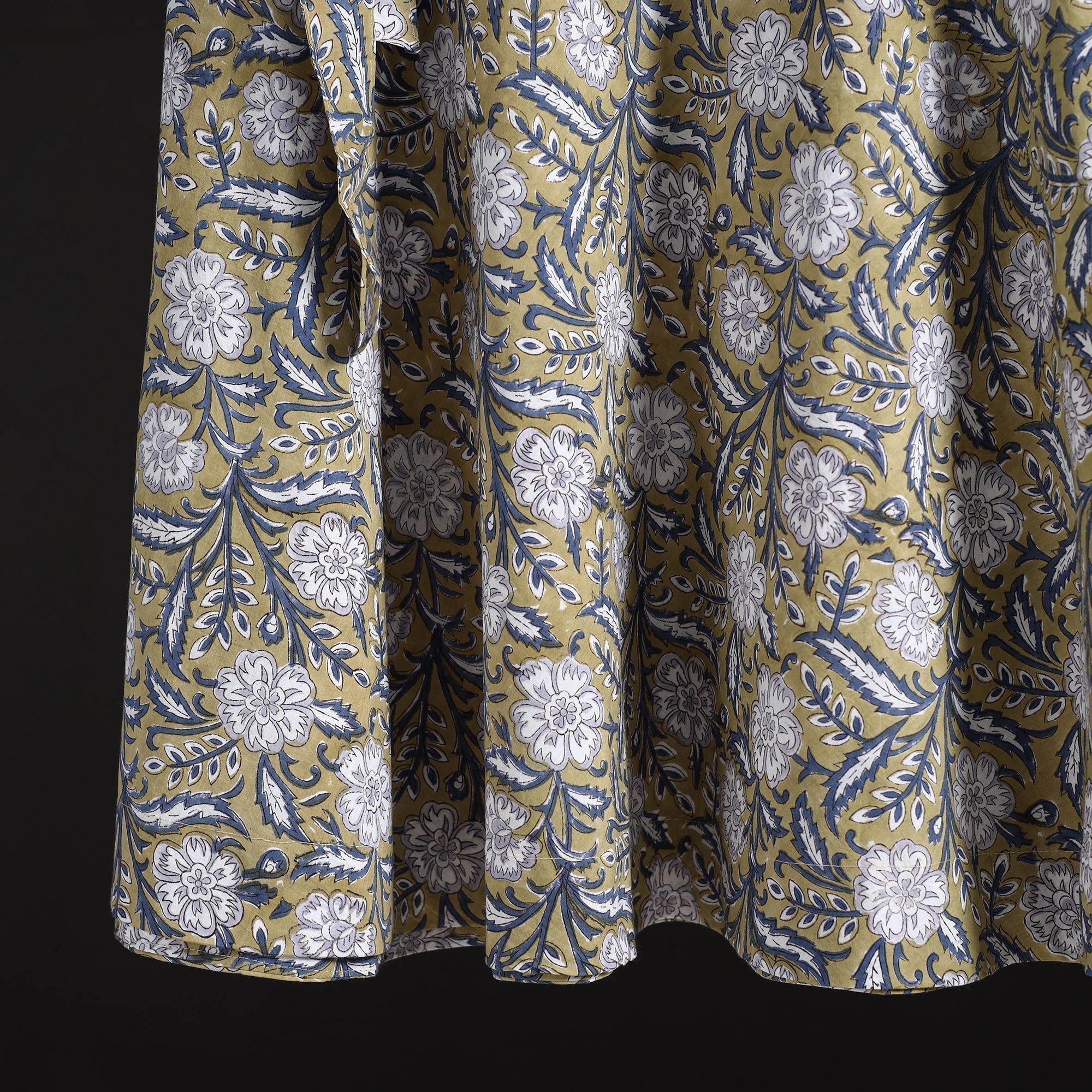 | Material | Yellow sanganeri hand block print cotton wrap-around skirt for women's, featuring an easy tie-up waist closure for a comfortable, adjustable fit. This centuries-old block printing technique has been practiced for over 500 years and is known for its fine detailing and delicate floral motifs. The designs are printed using traditional hand-carved wooden blocks and bleed-free VAT dyes. The wrap style makes it effortless to wear and flattering for all body types. Perfect for daily wear, vacations or relaxed outings. |