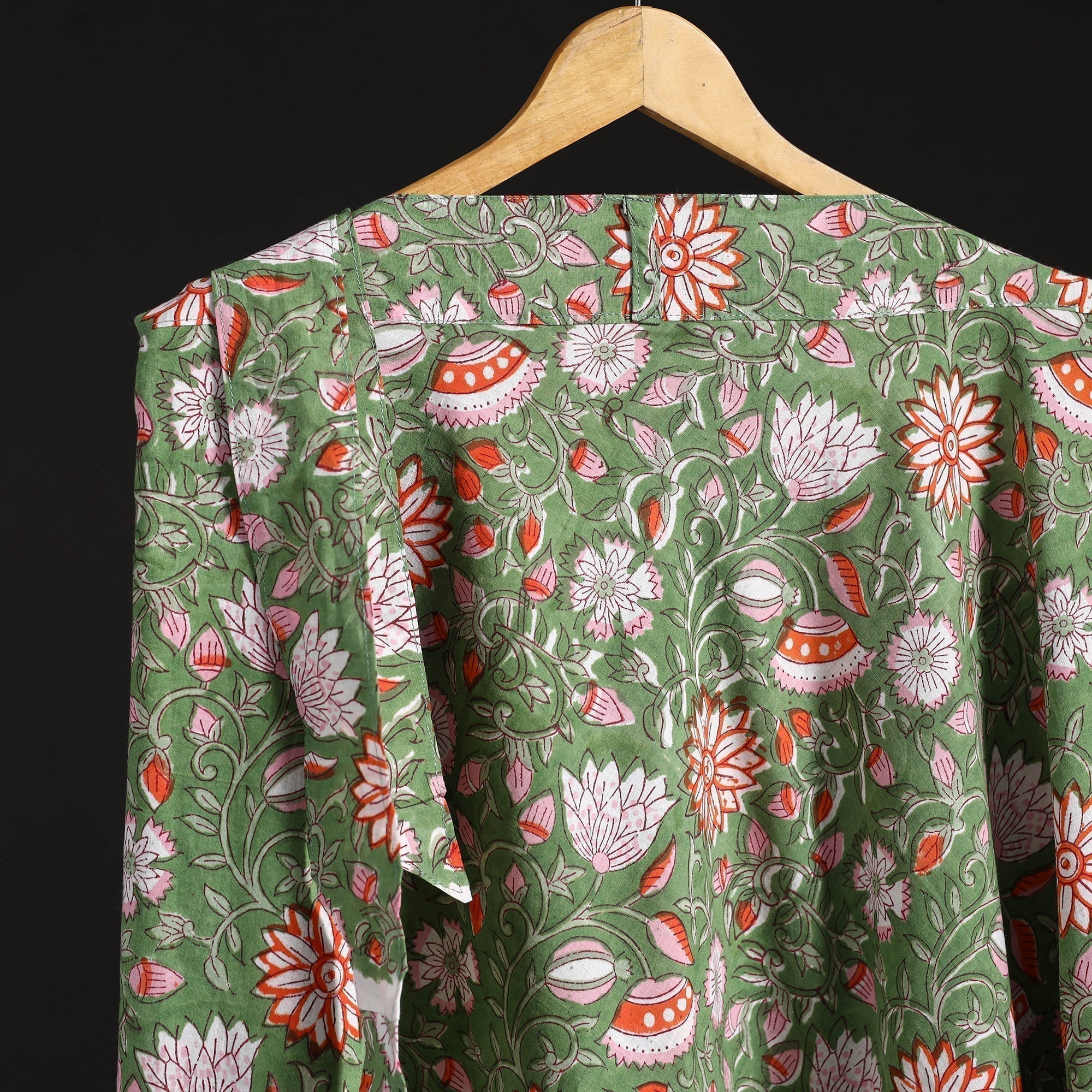 Green - Sanganeri Hand Block Print Cotton Wrap Around Skirt 83