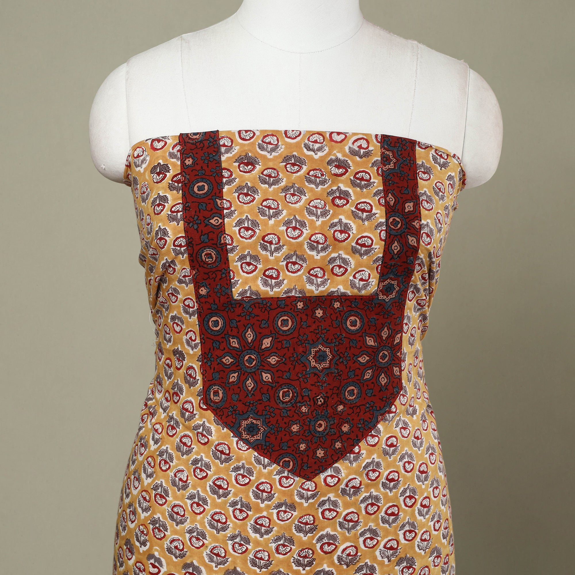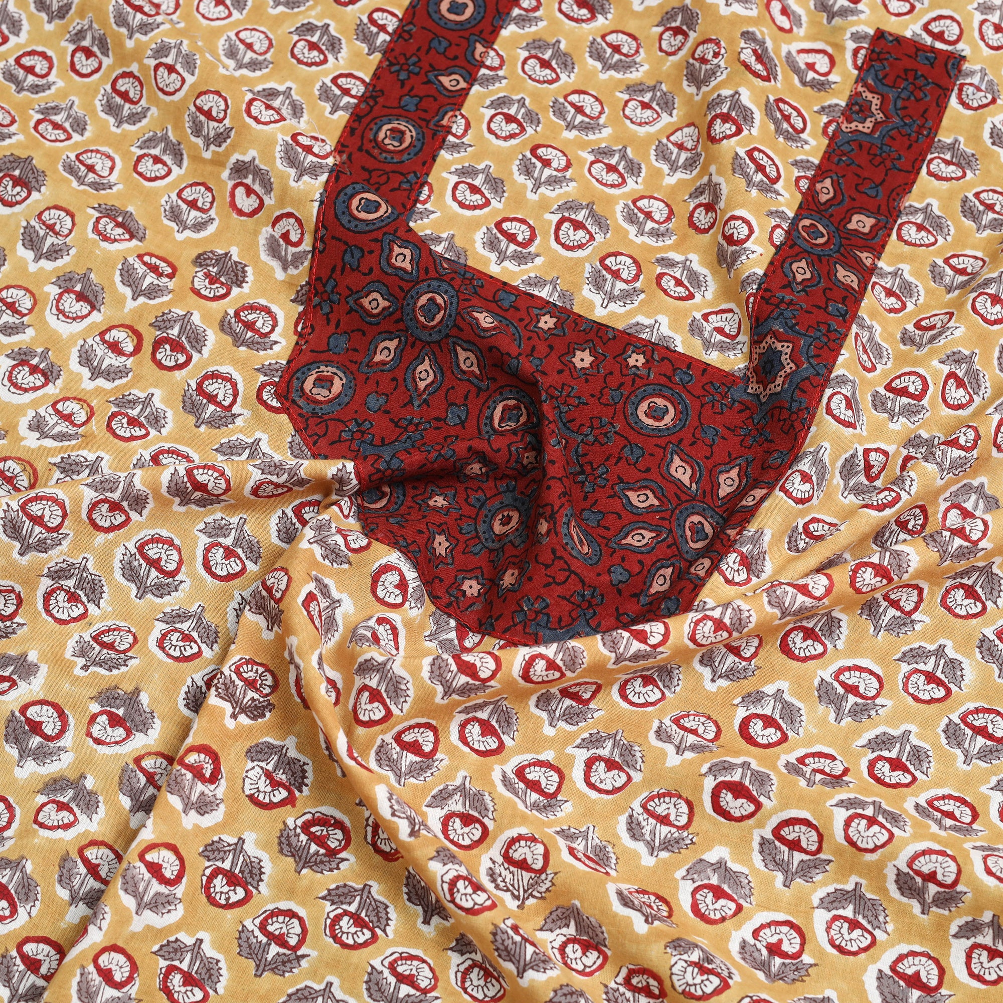 Step into the world of handcrafted beauty with this yellow sanganeri block print patchwork kurta material. The patchwork design adds a creative edge, it’s perfect for designing personalized ethnic outfits that reflect your love for traditional crafts and aesthetics.