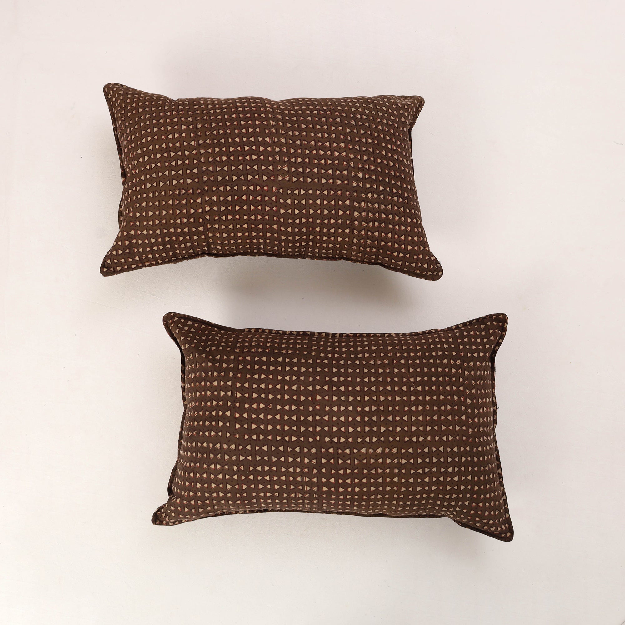 Set of 2 akola brown block print cotton pillow covers. Made by skilled artisans, these pillow covers bring a blend of traditional craftsmanship and modern. The cotton material is both durable and eco-friendly, perfect for adding a touch of style and sustainability to your living space & bedroom.