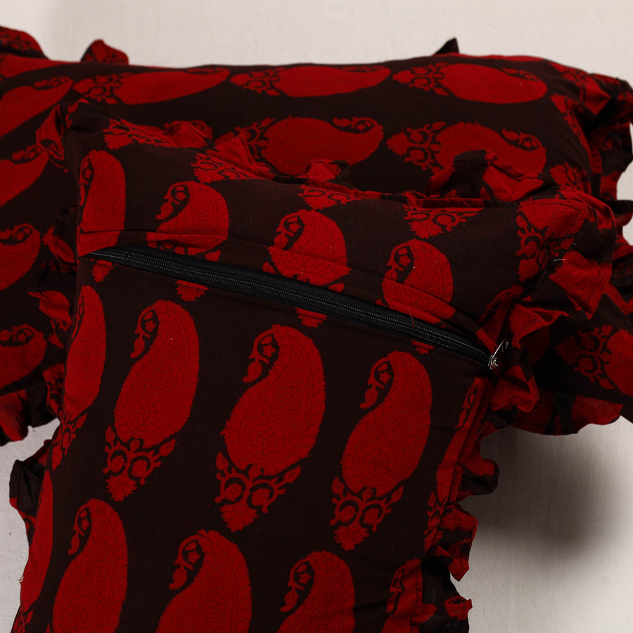 Enhance your home with our red set of 2 bagh block print cotton frill pillow covers. Made by skilled artisans, these pillow covers bring a blend of traditional craftsmanship and modern. The cotton material is both durable and eco-friendly, perfect for adding a touch of style and sustainability to your living space & bedroom.