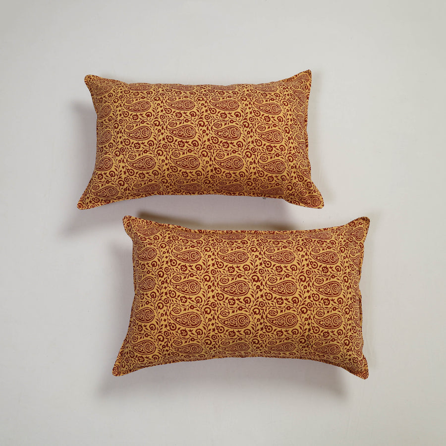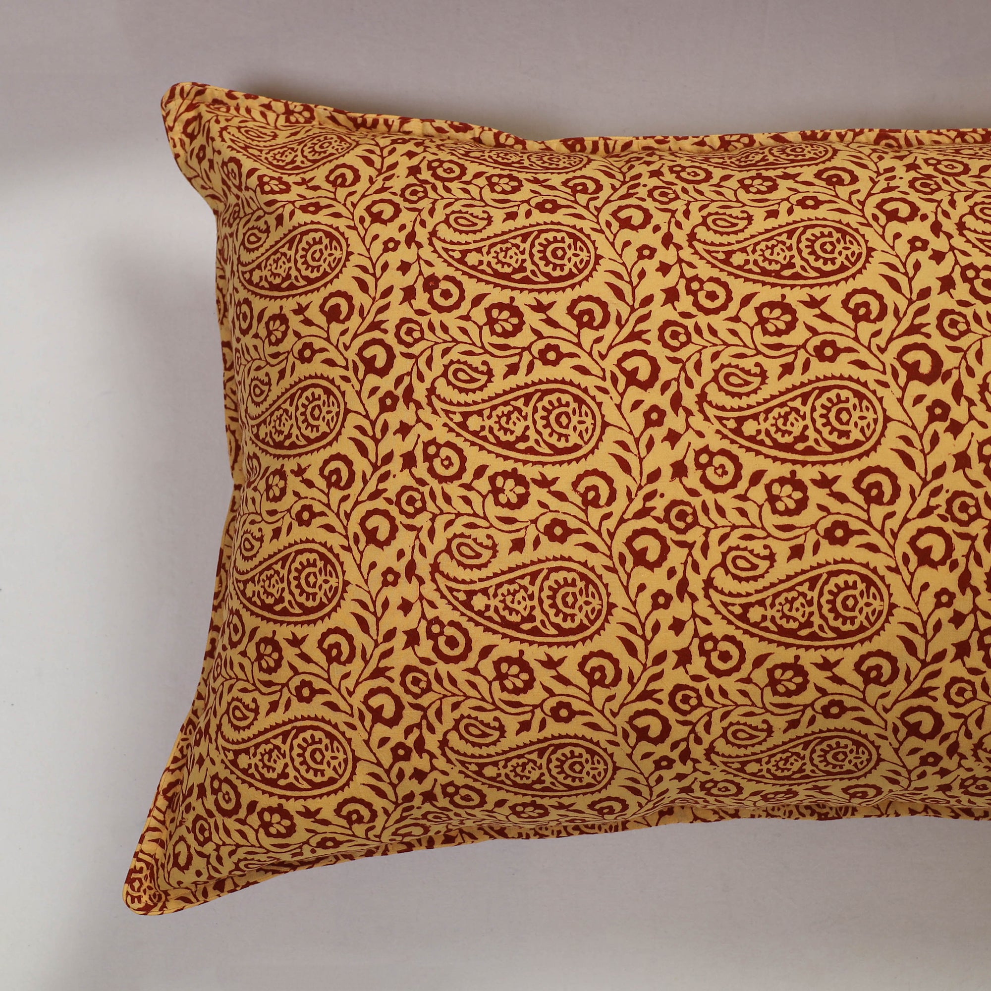 Enhance your bedroom with our set of 2 yellow bagh block print cotton pillow covers, textured with handmade textiles of India. These covers blend traditional craftsmanship with modern design, making them perfect for adding a charming, artisanal touch to any space.