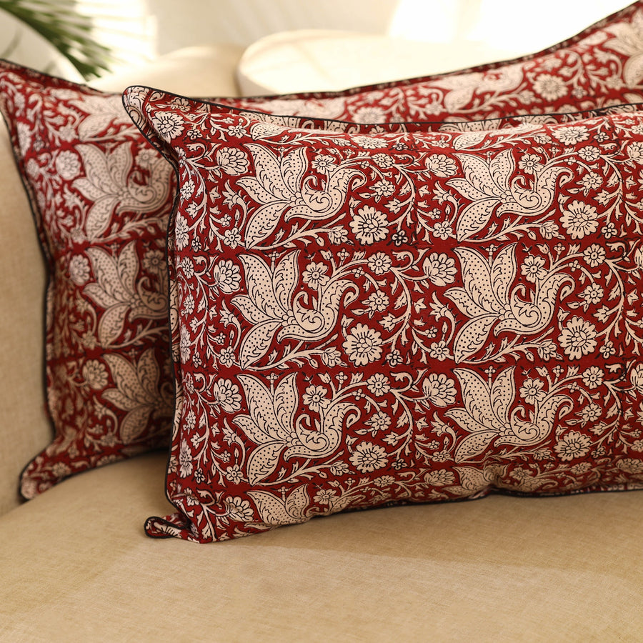 Add a touch of artisanal charm to your home with this set of 2 maroon bagh block print cotton pillow covers. Crafted from premium Indian fabric, they feature intricate textures and rich patterns. Perfect for enhancing the look of your bedroom, reading book, or lounge with elegance, comfort, and traditional appeal.