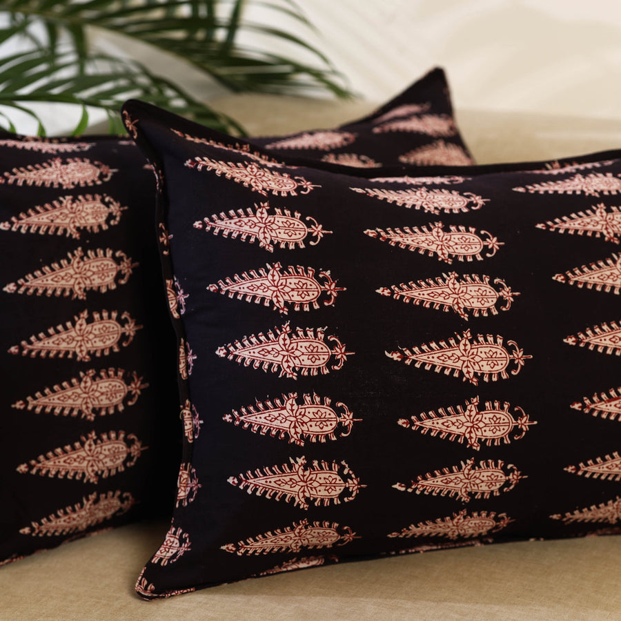 Transform your space with the elegance of black bagh block printing. This set of 2 cotton pillow covers features intricate motifs, inspired by age-old Indian textile traditions. Ideal for bedrooms, lounges, or gifting, these covers add a handcrafted charm to your surroundings.
