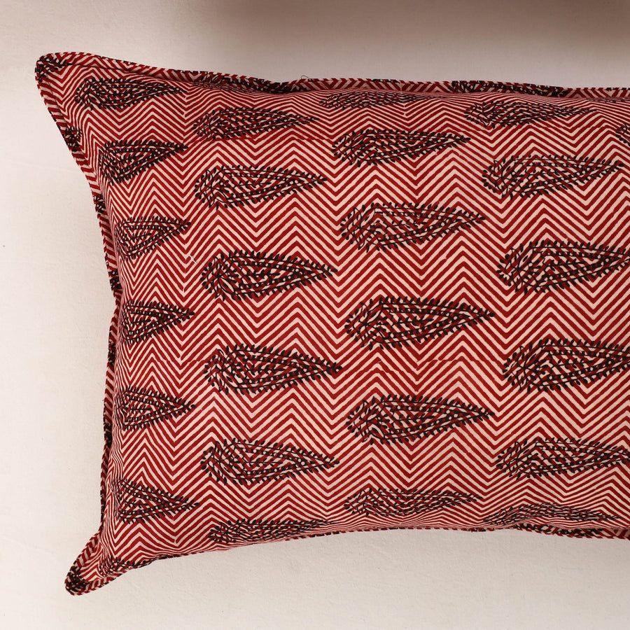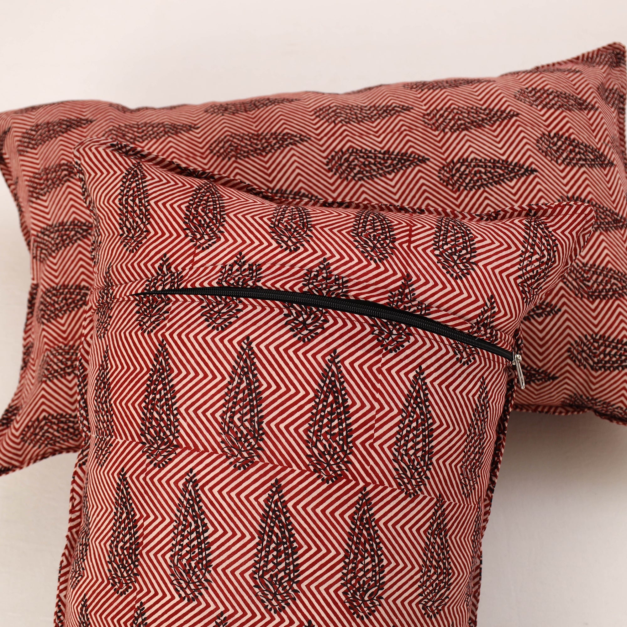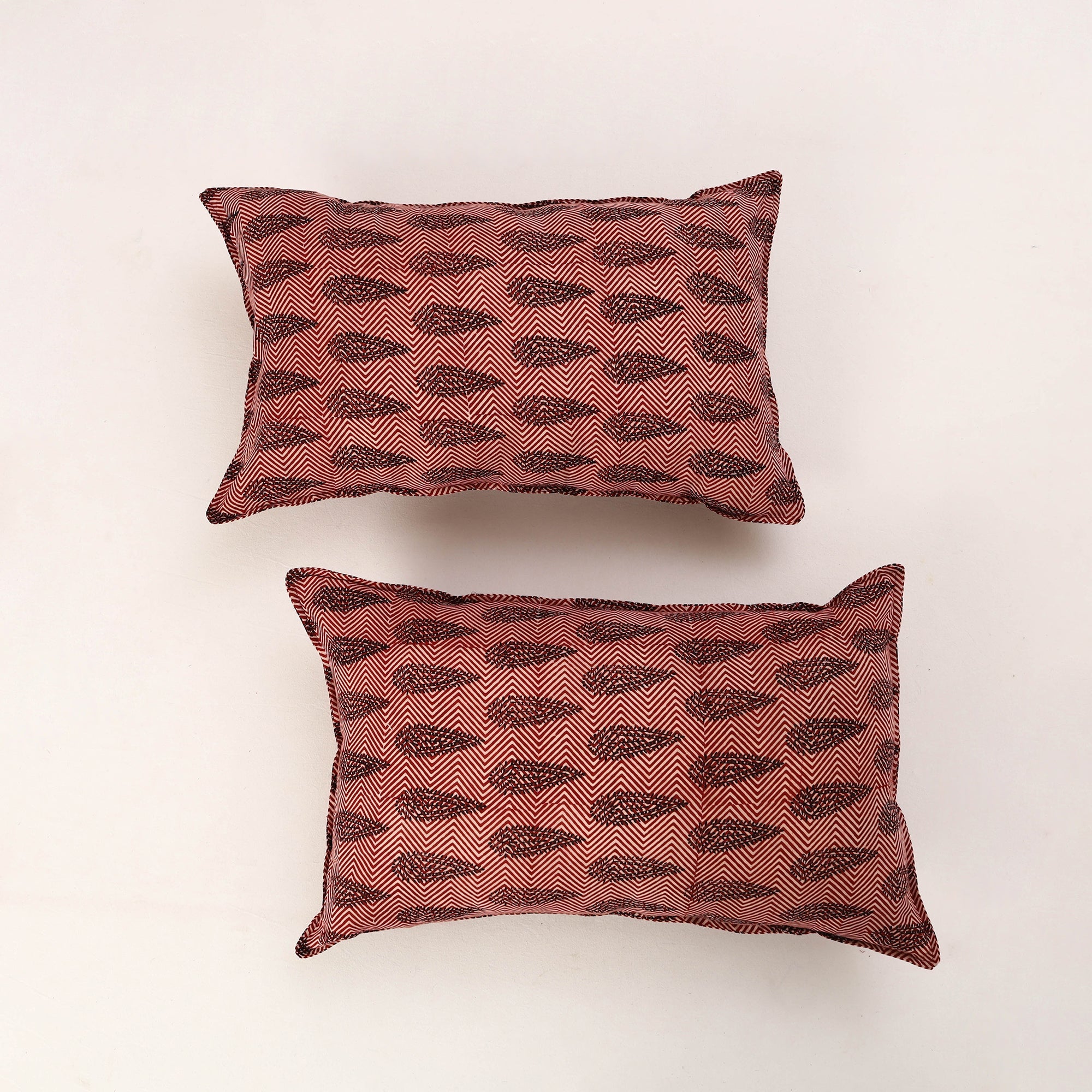 Set of 2 bagh maroon block print cotton pillow covers. Made by skilled artisans, these pillow covers bring a blend of traditional craftsmanship and modern. The cotton material is both durable and eco-friendly, perfect for adding a touch of style and sustainability to your living space & bedroom.