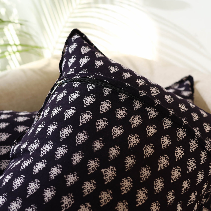 Transform your space with this set of 2 black bagru block print cotton pillow covers. Made by skilled artisans, these pillow covers bring a blend of traditional craftsmanship and modern. Blending traditional craftsmanship with modern aesthetics, these covers showcase timeless elegance.