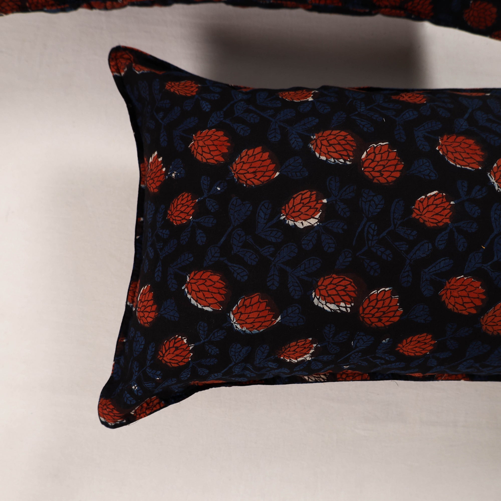 Enhance your home with our black set of 2 bagru block print cotton pillow covers. Made by skilled artisans, these pillow covers bring a blend of traditional craftsmanship and modern. The cotton material is both durable and eco-friendly, perfect for adding a touch of style and sustainability to your living space & bedroom.