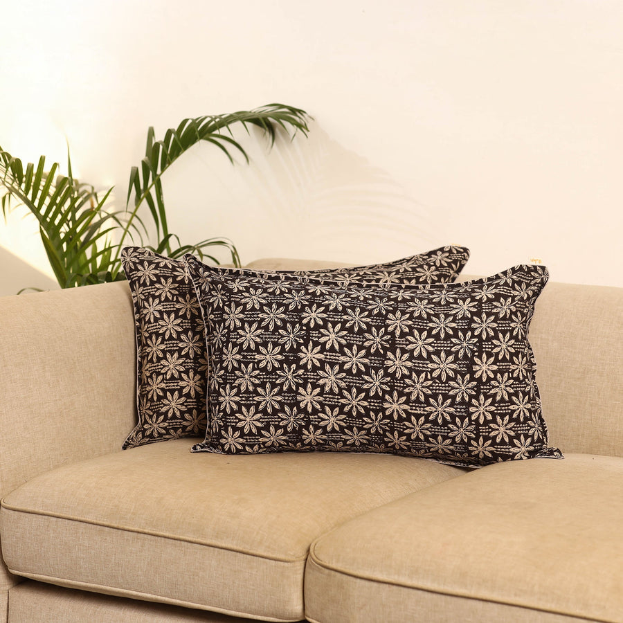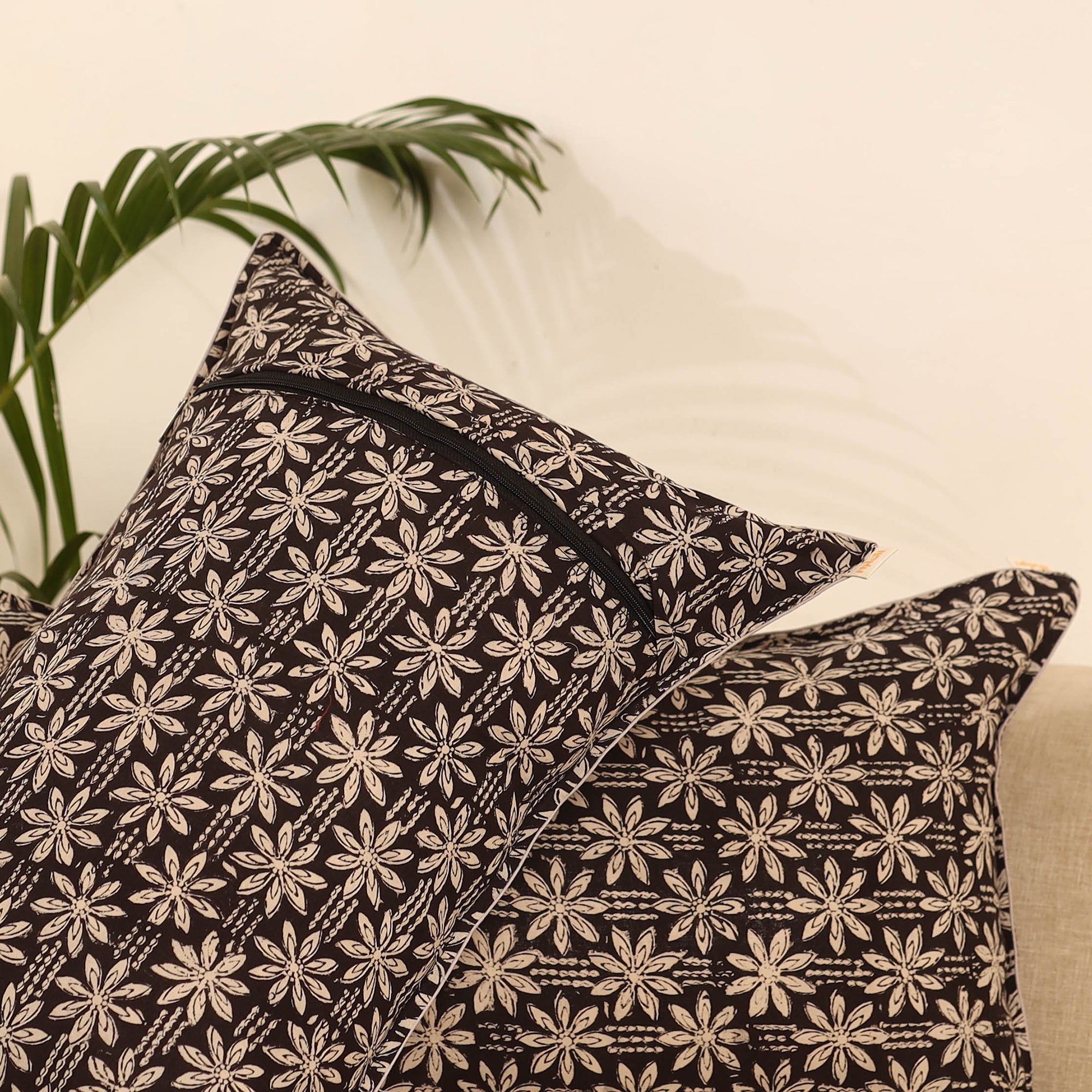 This black set of 2 bagru hand block print pillow covers is made from cotton and crafted by skilled artisans using traditional techniques. Each cover features vibrant patterns inspired by Indian textile art, making them perfect for enhancing the look of your sofa, bed, or lounge corner.