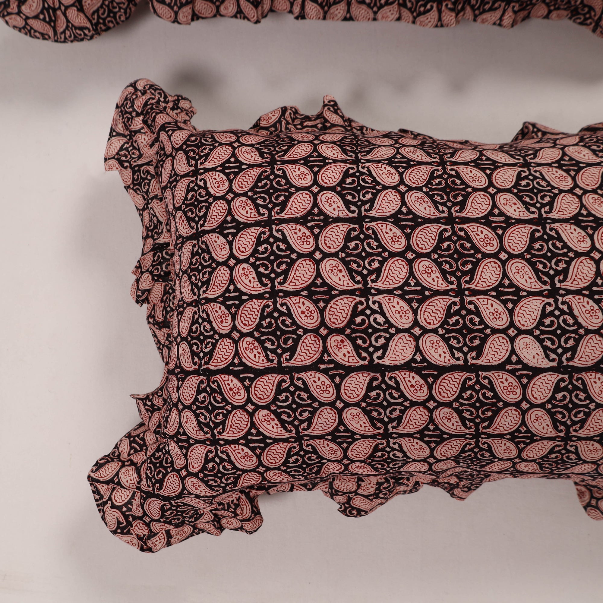Enhance your home with our set of 2 black handcrafted cotton frill pillow covers. These pillow covers bring a blend of traditional craftsmanship and modern. The cotton material is both durable and eco-friendly, perfect for adding a touch of style and sustainability to your living space bedroom. Each cover has frill accents for a charming look. Perfect for sustainable home decor.