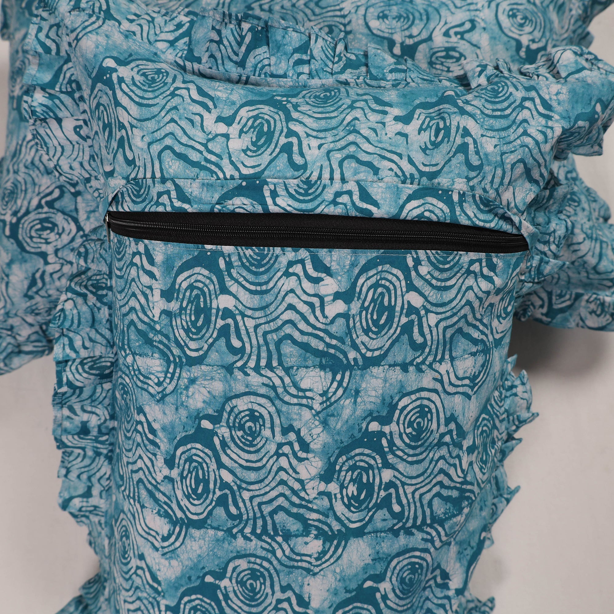 Enhance your home with our set of 2 blue handcrafted cotton frill pillow covers. These pillow covers bring a blend of traditional craftsmanship and modern. The cotton material is both durable and eco-friendly, perfect for adding a touch of style and sustainability to your living space bedroom. Each cover has frill accents for a charming look. Perfect for sustainable home decor.