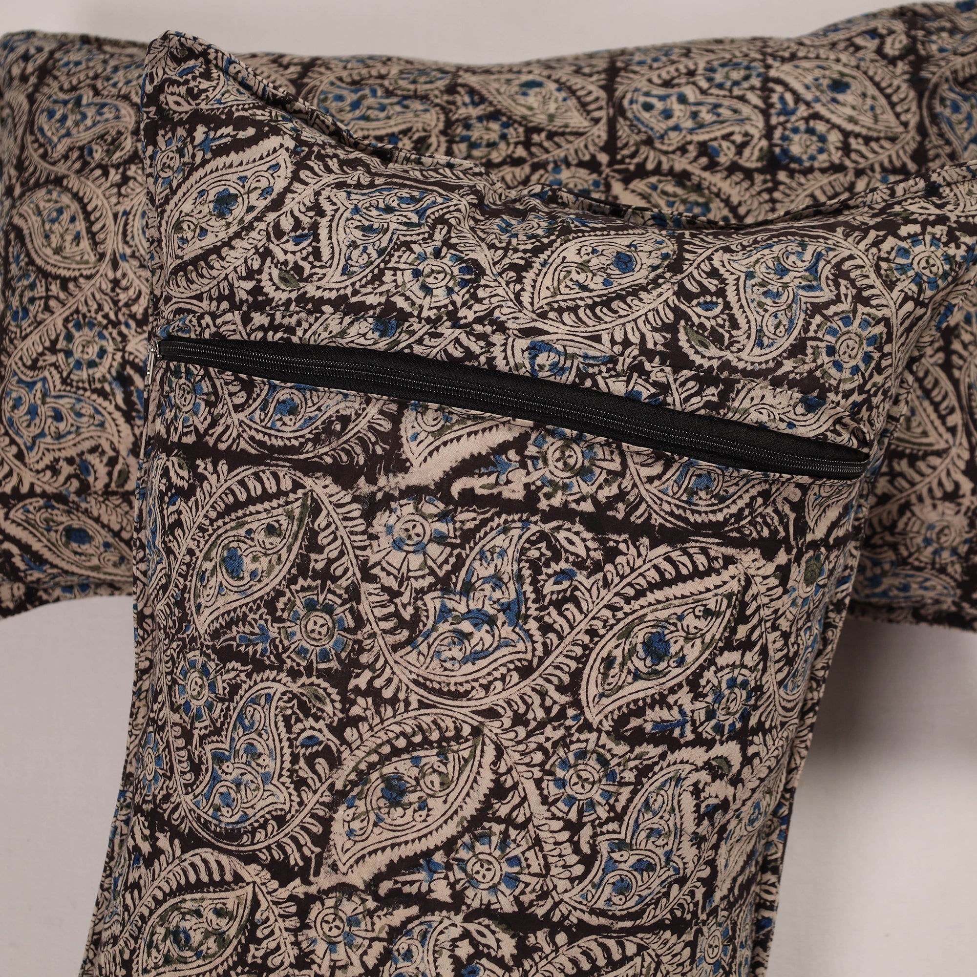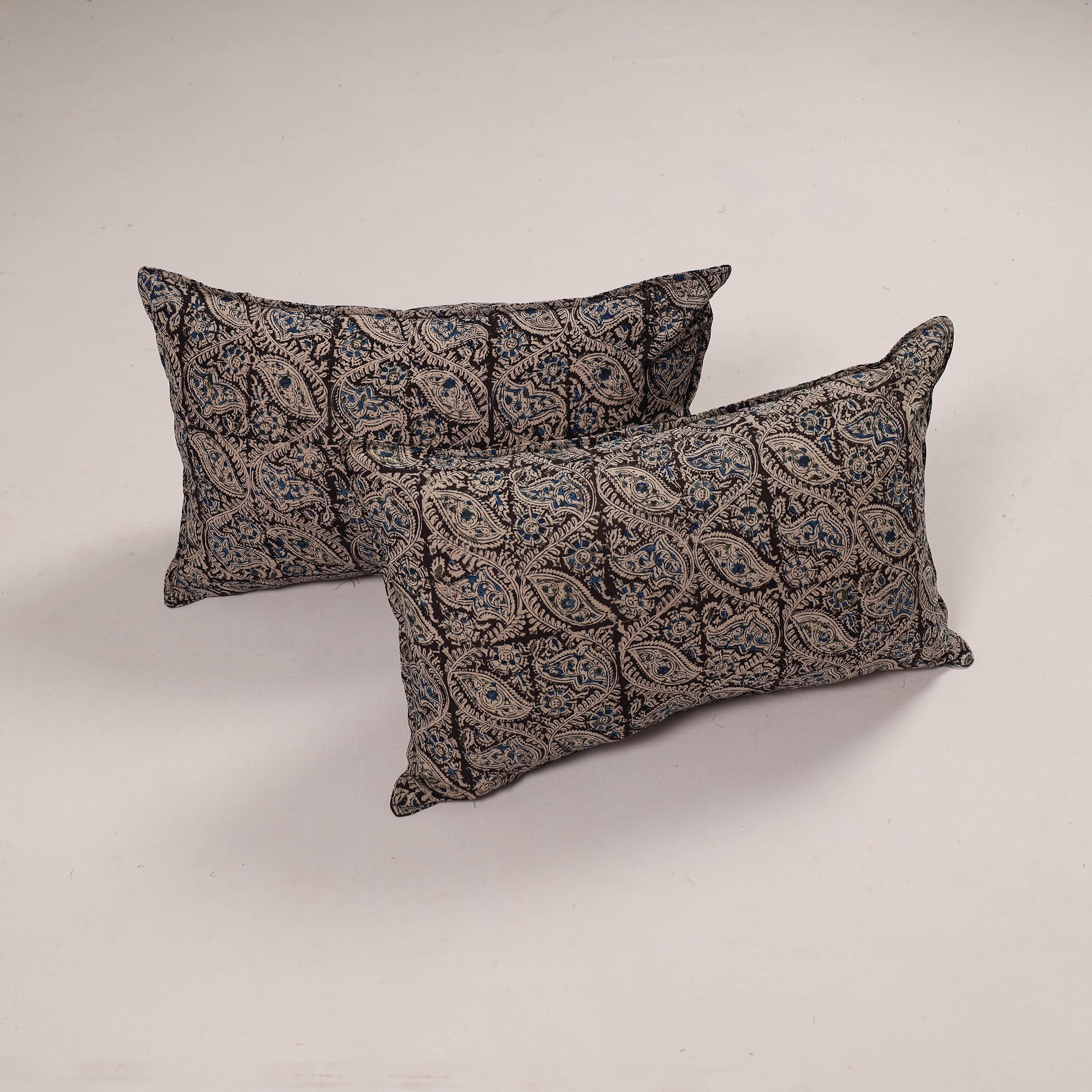 Enhance your home with our set of 2 black handcrafted cotton pillow covers. These pillow covers bring a blend of traditional craftsmanship and modern. The cotton material is both durable and eco-friendly, perfect for adding a touch of style and sustainability to your living space bedroom. Each cover has accents for a charming look. Perfect for sustainable home decor.