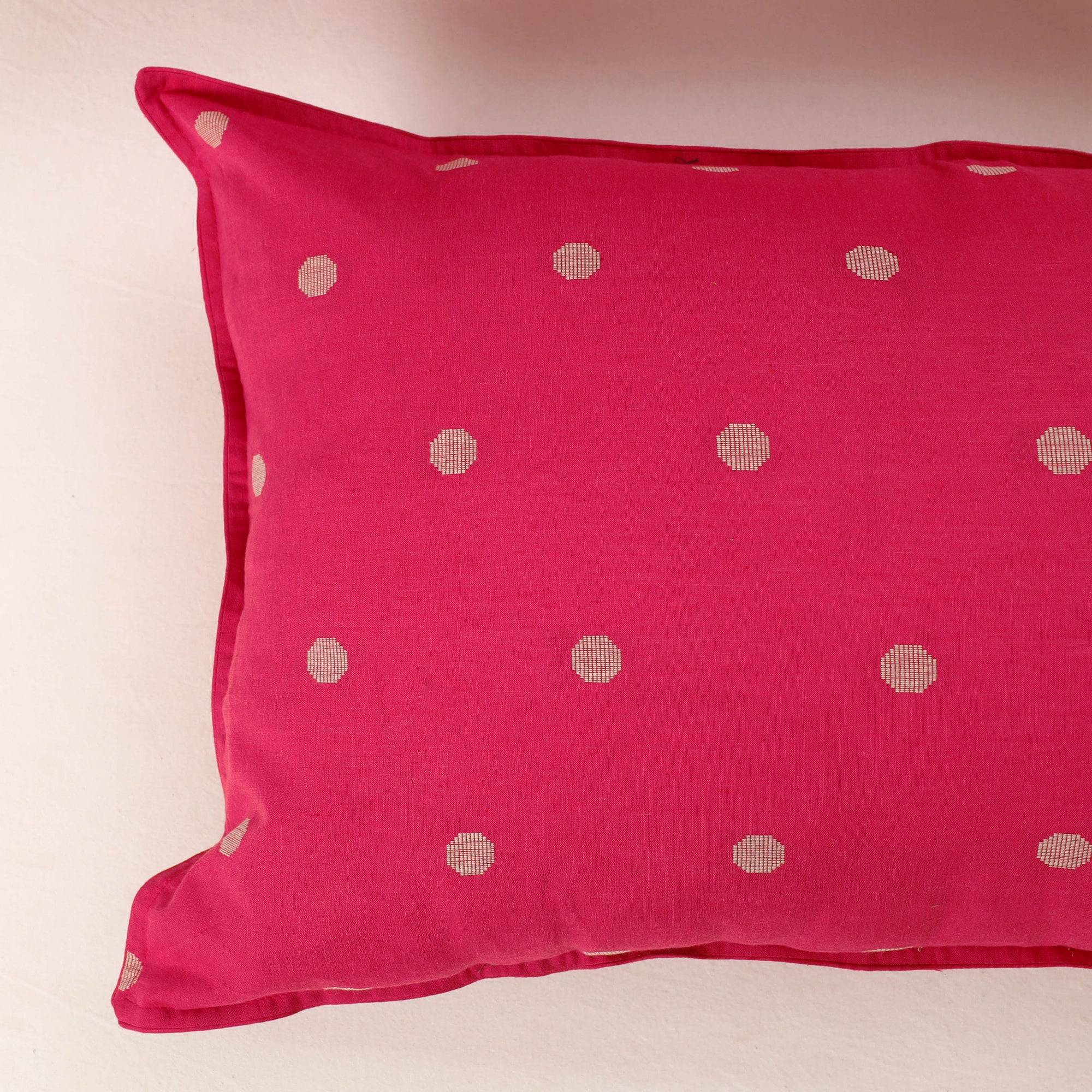 Set of 2 pink jacquard cotton pillow covers. Made by skilled artisans, these pillow covers bring a blend of traditional craftsmanship and modern. The cotton material is both durable and eco-friendly, perfect for adding a touch of style and sustainability to your living space & bedroom.