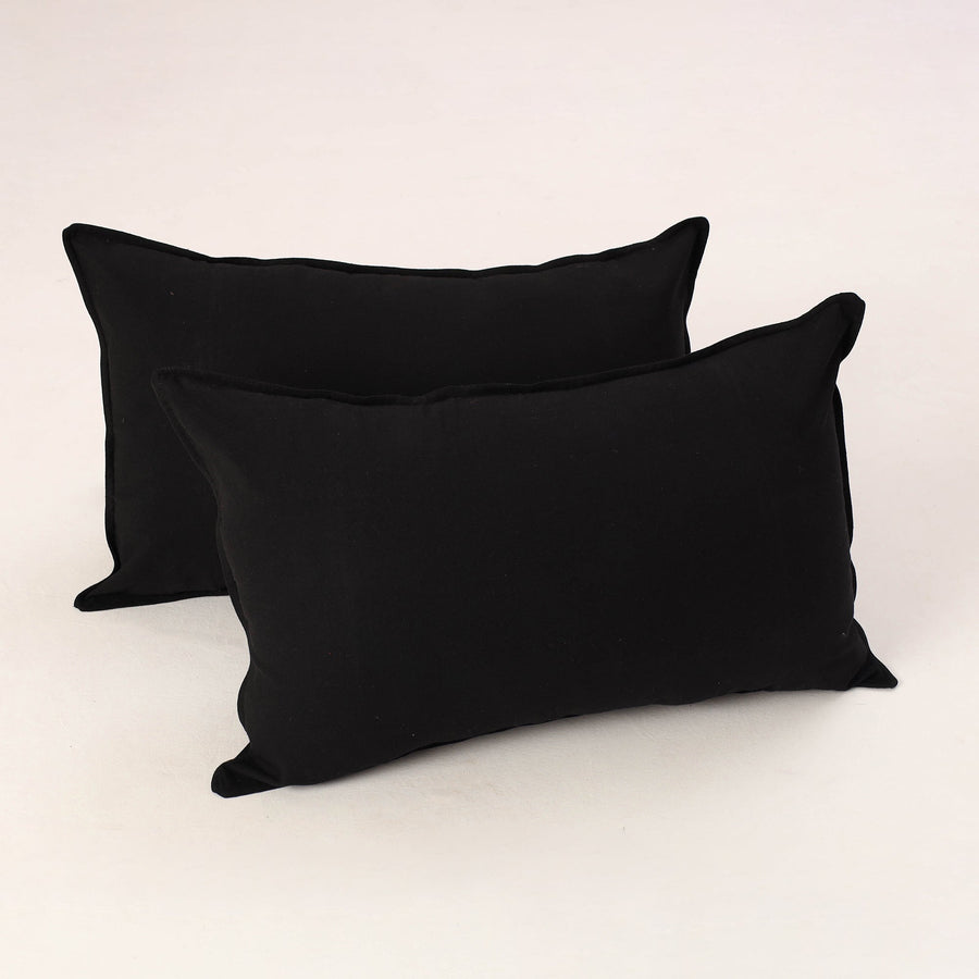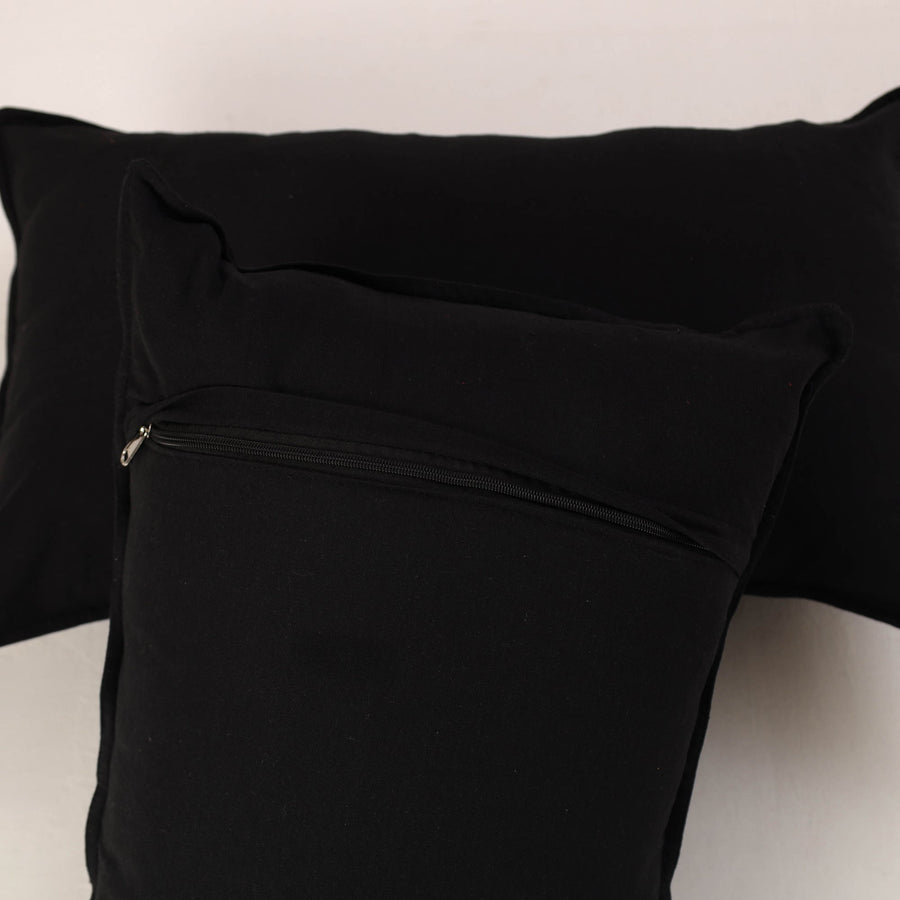 Set of 2 jhiri black handloom cotton pillow covers. Made by skilled artisans, these pillow covers bring a blend of traditional craftsmanship and modern. The cotton material is both durable and eco-friendly, perfect for adding a touch of style and sustainability to your living space & bedroom.