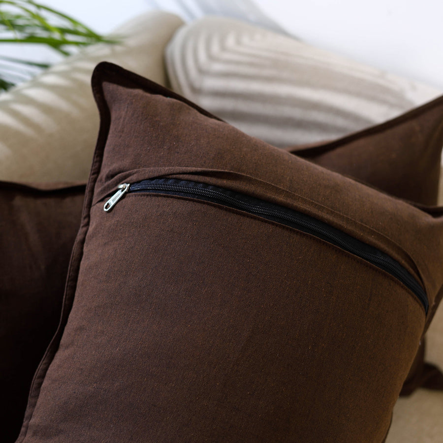 Enhance your living space with this set of 2 brown jhiri cotton pillow covers, designed using traditional Indian textile techniques. These covers beautifully combine heritage with elegance, offering a soft, breathable cotton texture that adds both comfort and sophistication. Perfect for bedrooms, living areas, or as a thoughtful gift, they effortlessly elevate any decor.