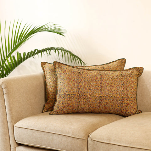 • Brown Set of 2 Kalamkari Block Print Cotton Pillow Covers