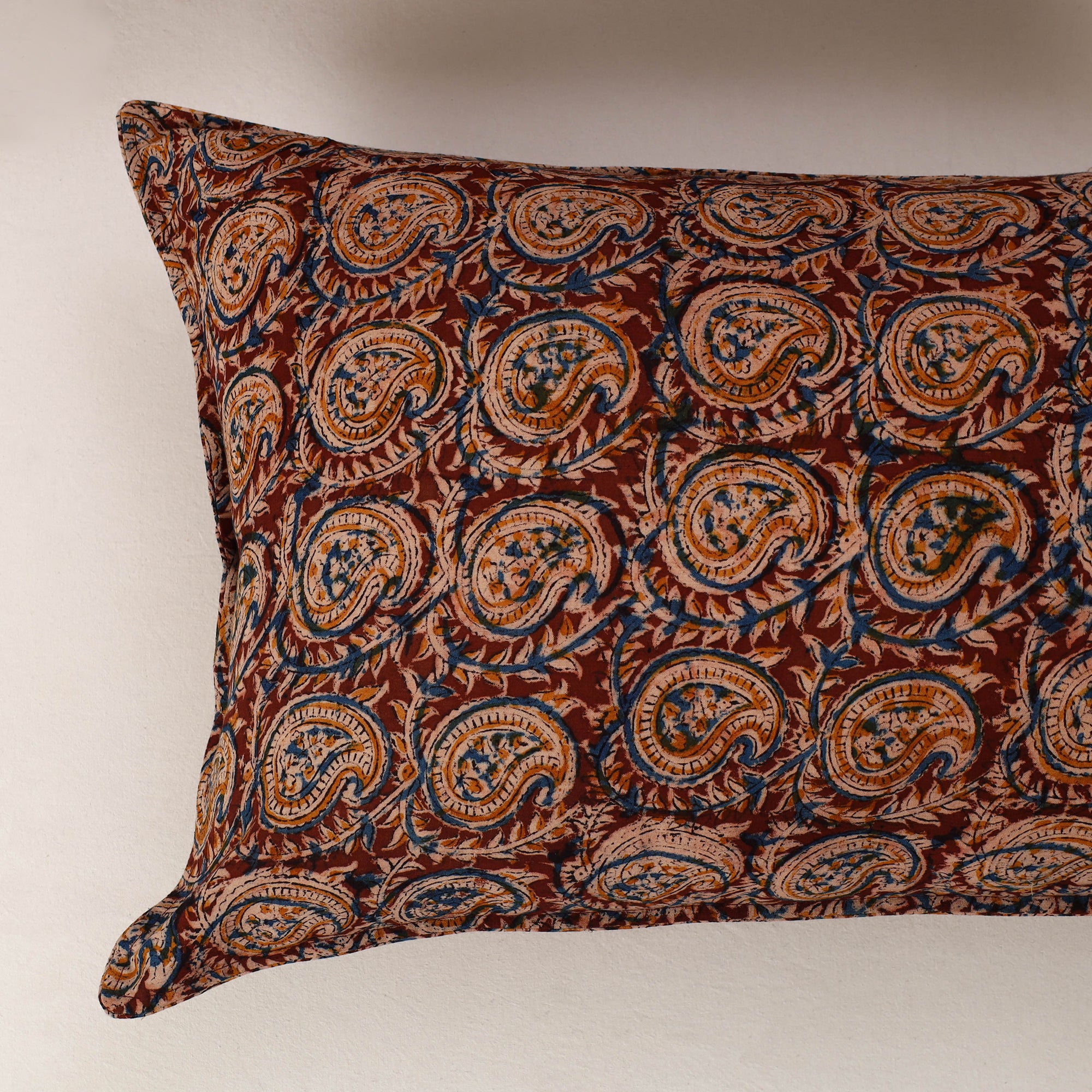 Set of 2 maroon kalamkari block print cotton pillow covers. Made by skilled artisans, these pillow covers bring a blend of traditional craftsmanship and modern. The cotton material is both durable and eco-friendly, perfect for adding a touch of style and sustainability to your living space & bedroom.