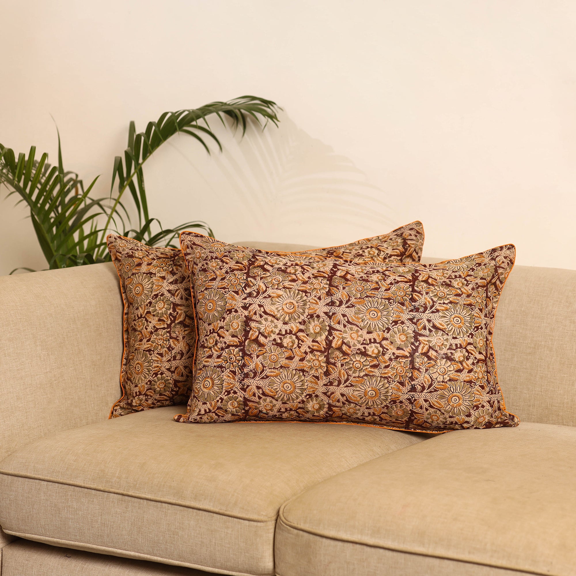 Maroon set of 2 kalamkari hand block print pillow covers is made from pure cotton and crafted by skilled artisans using traditional techniques. Each cover features vibrant patterns inspired by Indian textile art, making them perfect for enhancing the look of your sofa, bed or lounge corner.