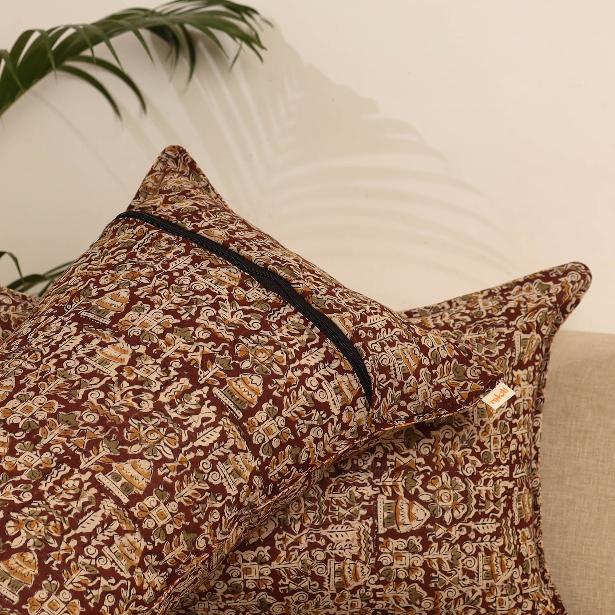 Maroon set of 2 kalamkari hand block print pillow covers is made from pure cotton and crafted by skilled artisans using traditional techniques. Each cover features vibrant patterns inspired by Indian textile art, making them perfect for enhancing the look of your sofa, bed or lounge corner.