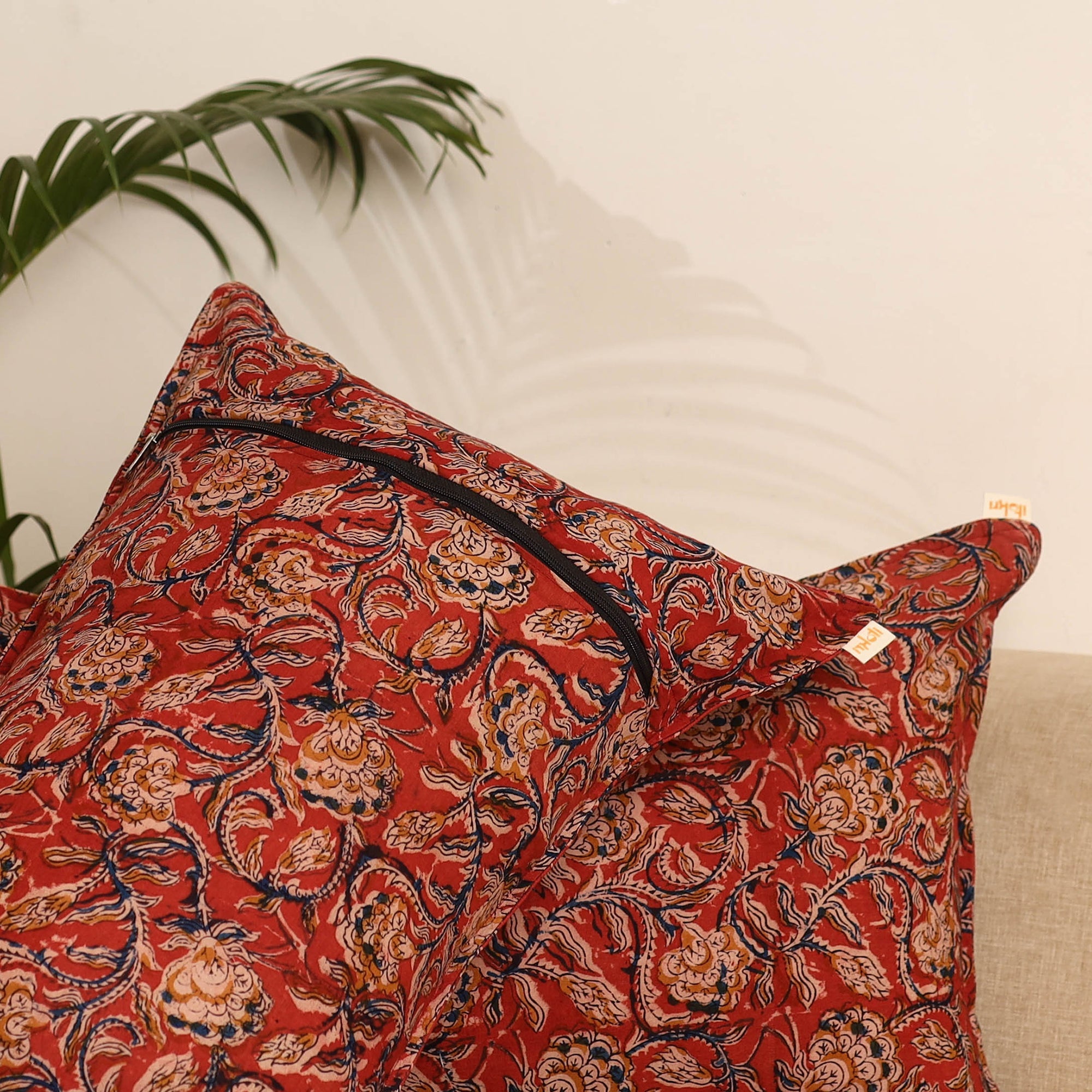 Red set of 2 kalamkari hand block print pillow covers is made from pure cotton and crafted by skilled artisans using traditional techniques. Each cover features vibrant patterns inspired by Indian textile art, making them perfect for enhancing the look of your sofa, bed or lounge corner.