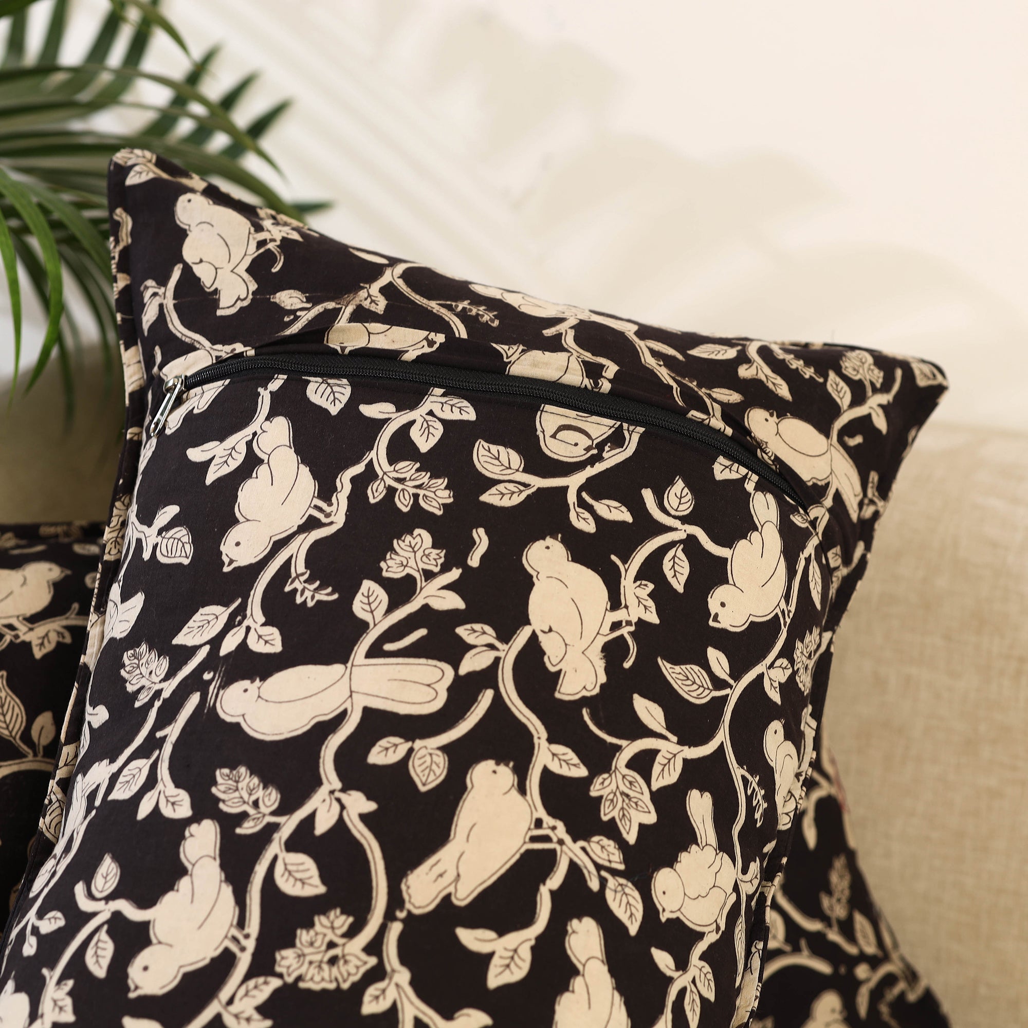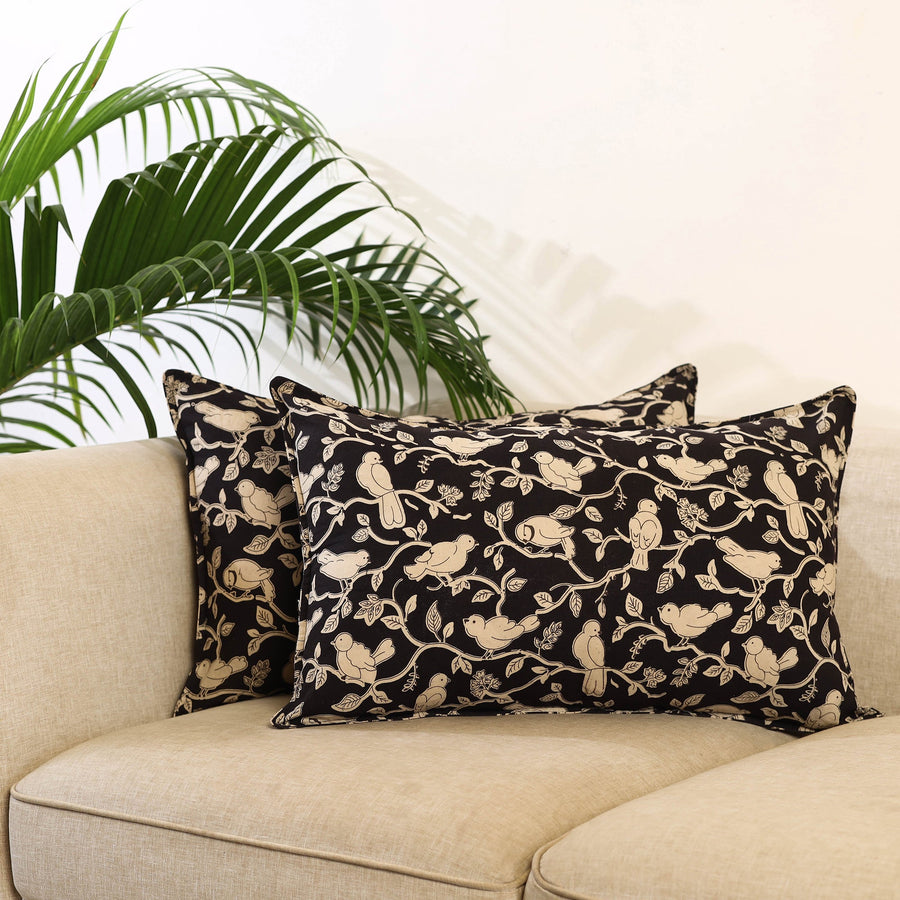 Bring a touch of artistry to your bedroom with this set of 2 black kalamkari print cotton pillow covers. Crafted from traditional Indian textiles, these covers beautifully blend heritage and contemporary style. Ideal for bedrooms, living areas, or as a thoughtful gift, they effortlessly complement any décor.