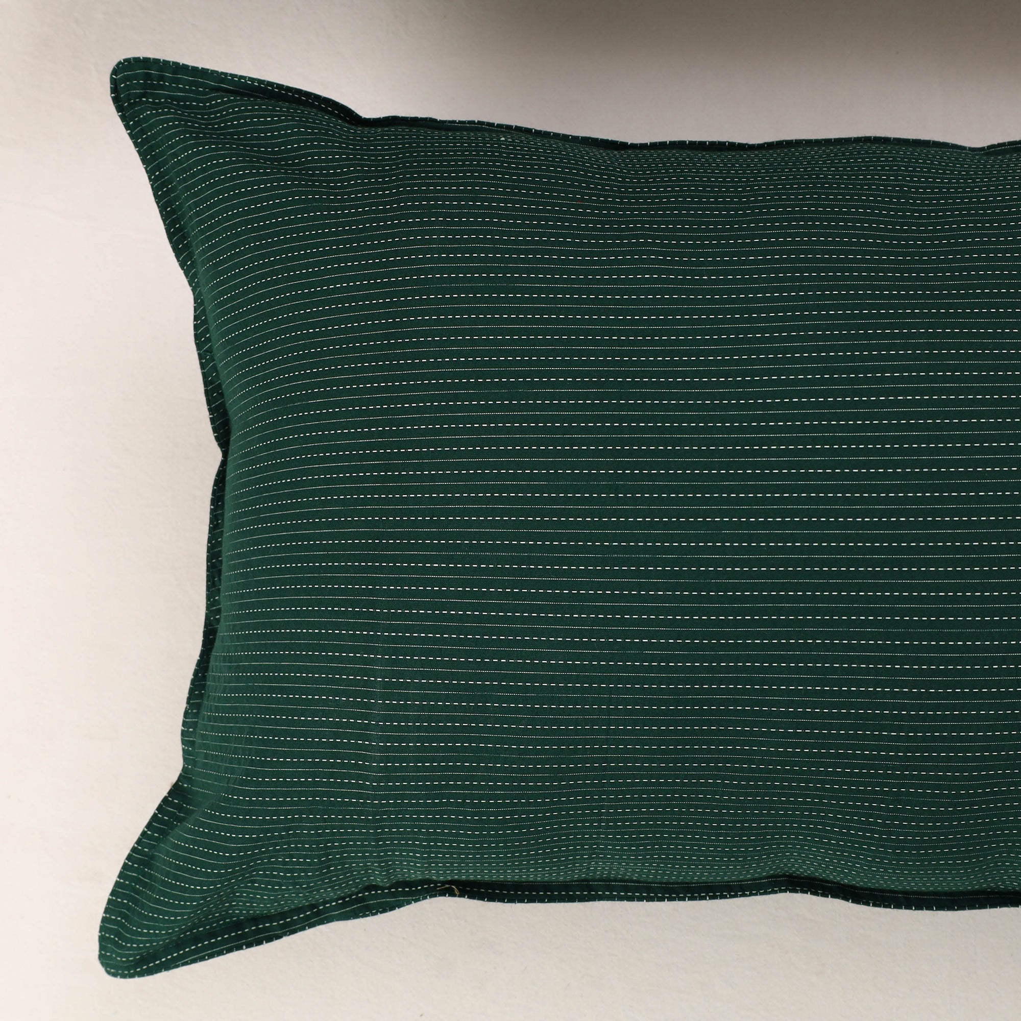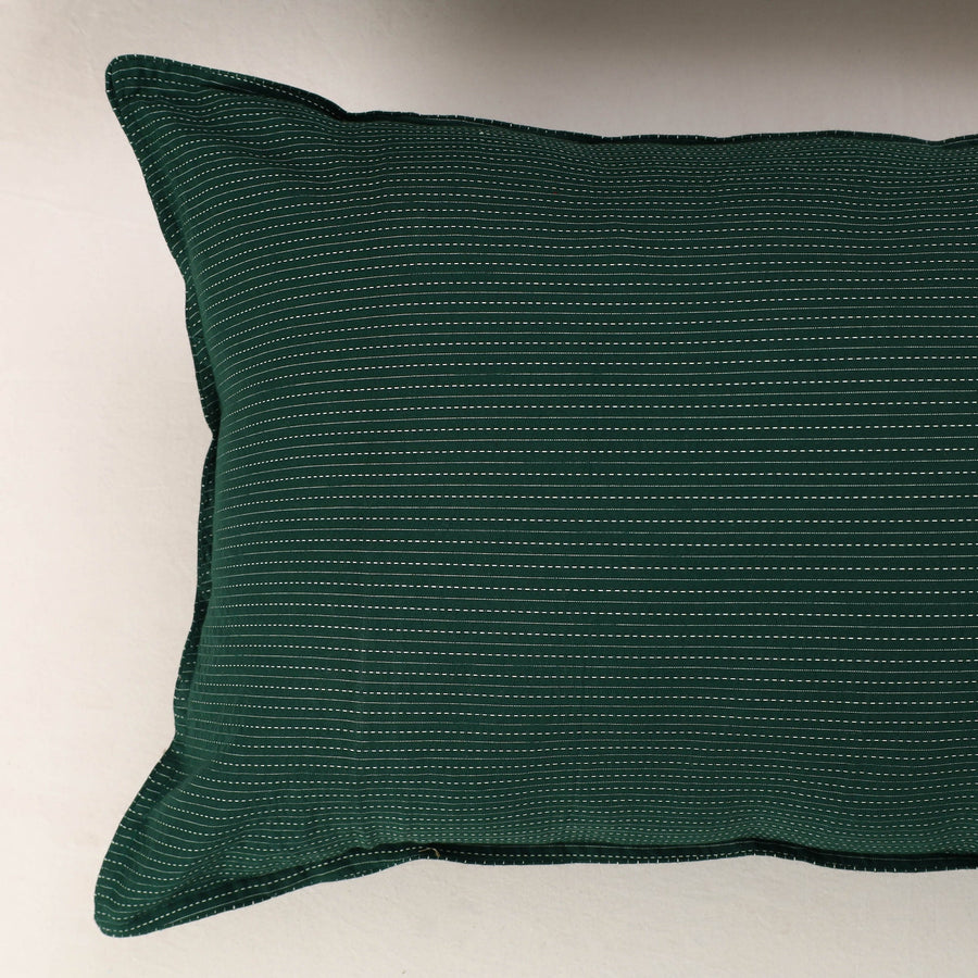 Set of 2 green kantha stitch cotton pillow covers. Made by skilled artisans, these pillow covers bring a blend of traditional craftsmanship and modern. The cotton material is both durable and eco-friendly, perfect for adding a touch of style and sustainability to your living space & bedroom.