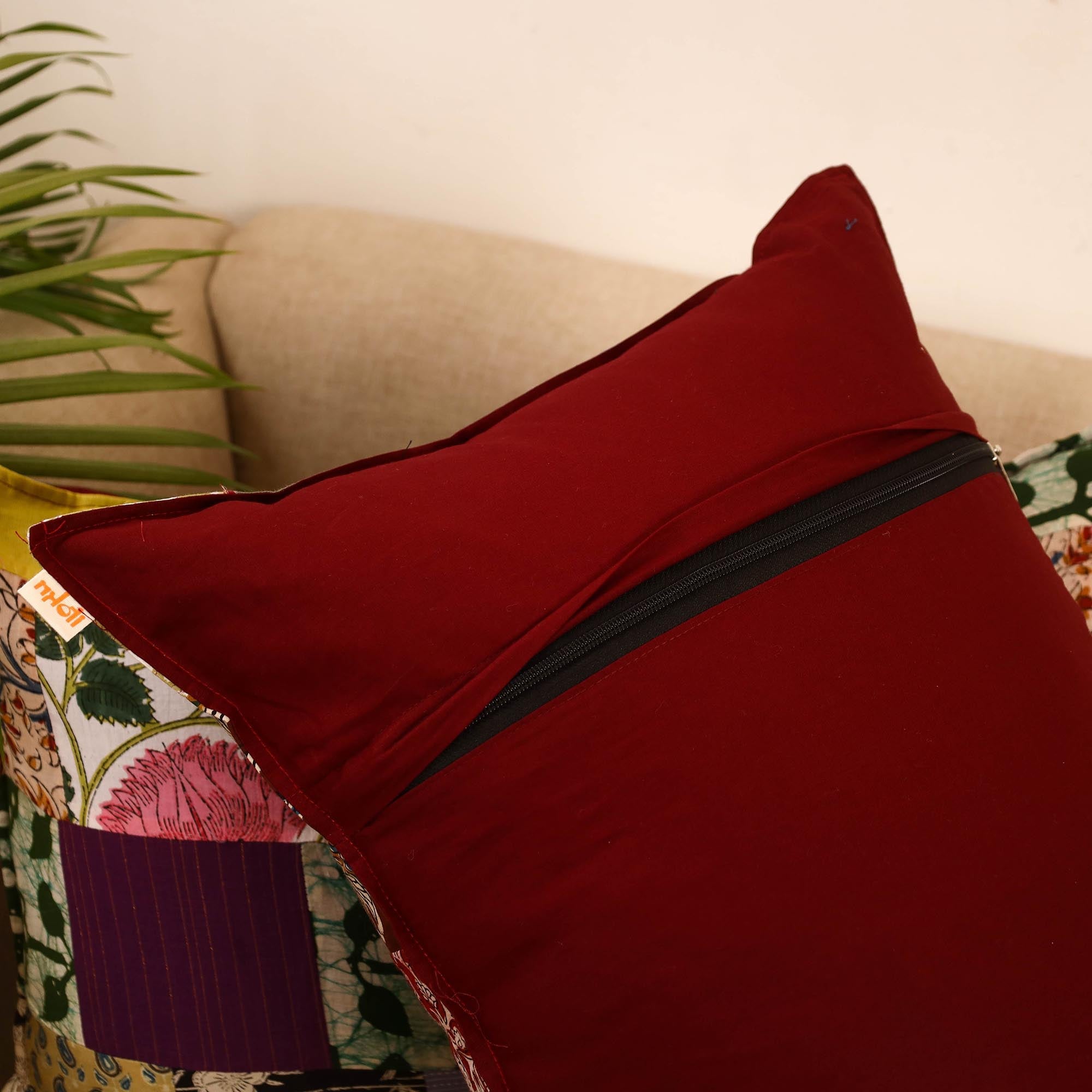 Set of 2 patchwork pillow covers is made from neatly stitched cotton pieces, showing the beauty of Indian textile work. Each cover has colourful patterns and a clean, handmade look. They are perfect for adding a warm, unique touch to any room and work well with both simple and traditional home decor.