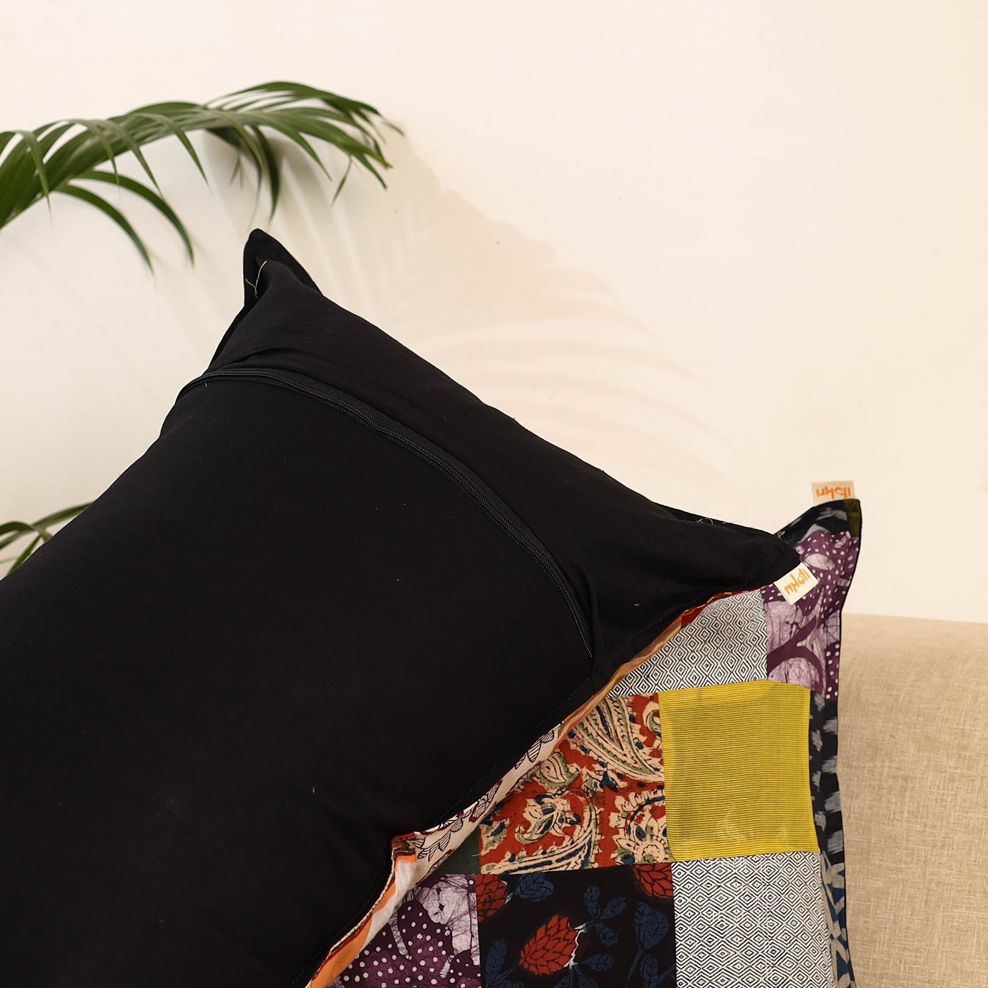 Set of 2 patchwork pillow covers is made from neatly stitched cotton pieces, showing the beauty of Indian textile work. Each cover has colourful patterns and a clean, handmade look. They are perfect for adding a warm, unique touch to any room and work well with both simple and traditional home decor.