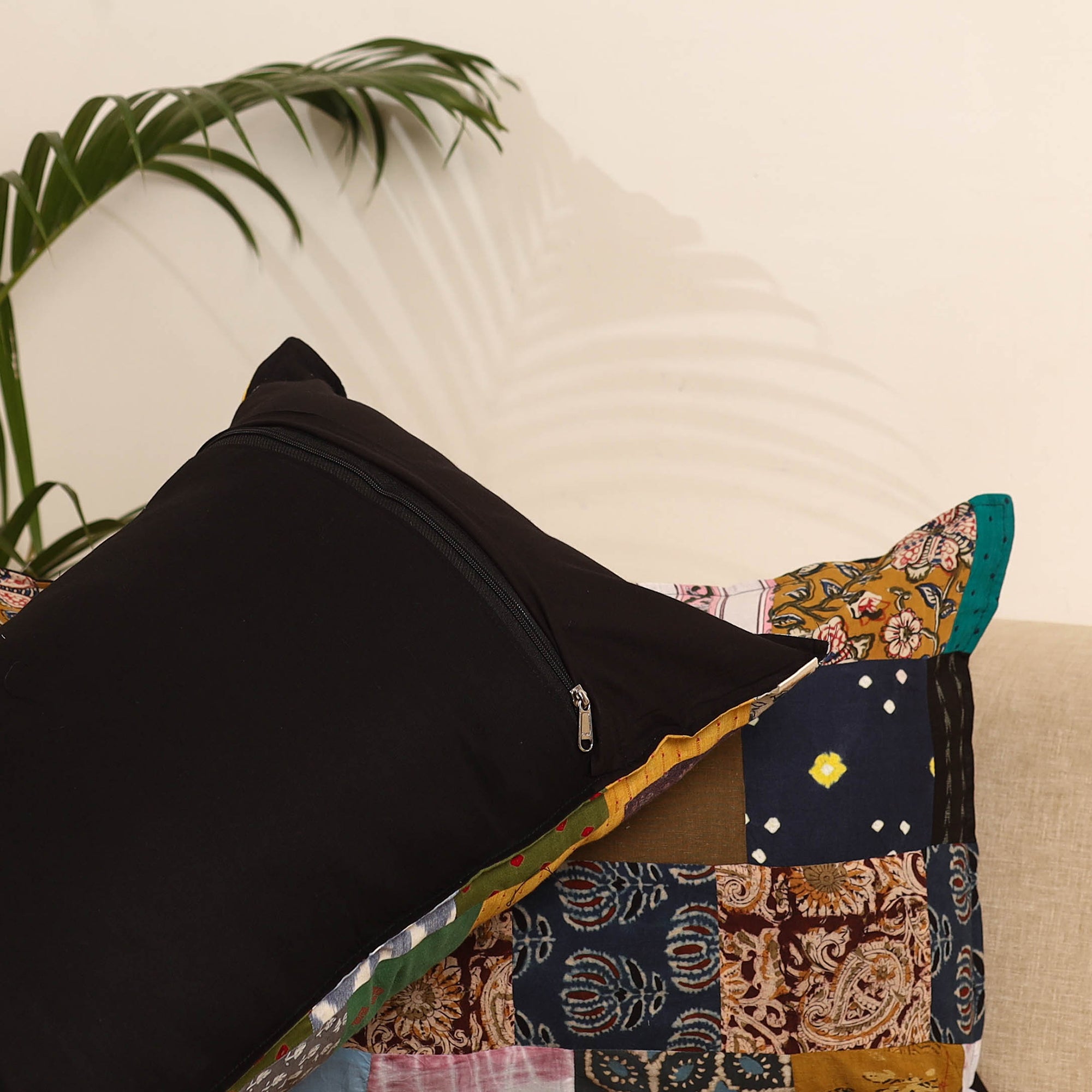 Set of 2 patchwork pillow covers is made from cotton and crafted by skilled artisans using traditional techniques. Each cover features vibrant patterns inspired by Indian textile art, making them perfect for enhancing the look of your sofa, bed or lounge corner.