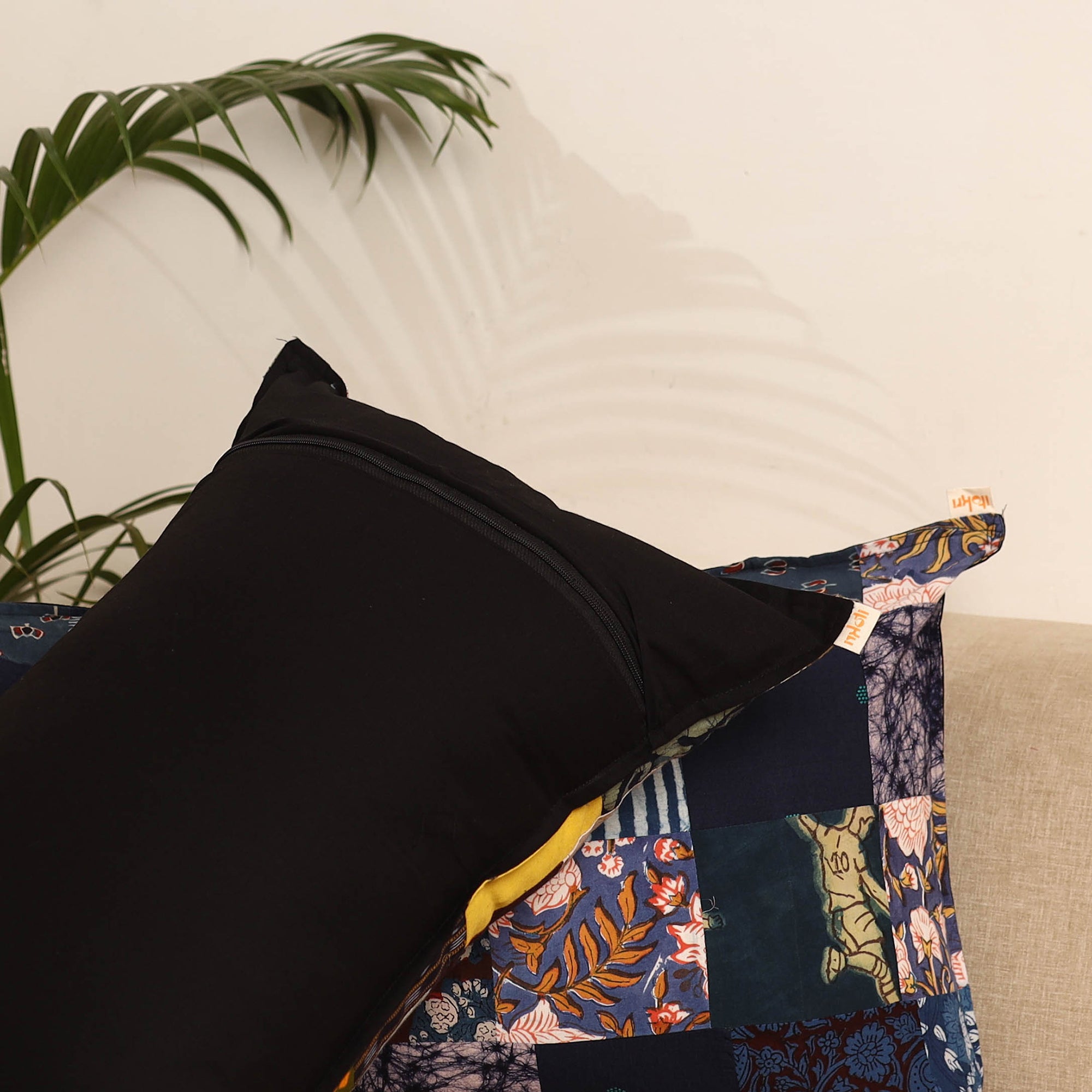 Set of 2 patchwork pillow covers is made from cotton and crafted by skilled artisans using traditional techniques. Each cover features vibrant patterns inspired by Indian textile art, making them perfect for enhancing the look of your sofa, bed or lounge corner.