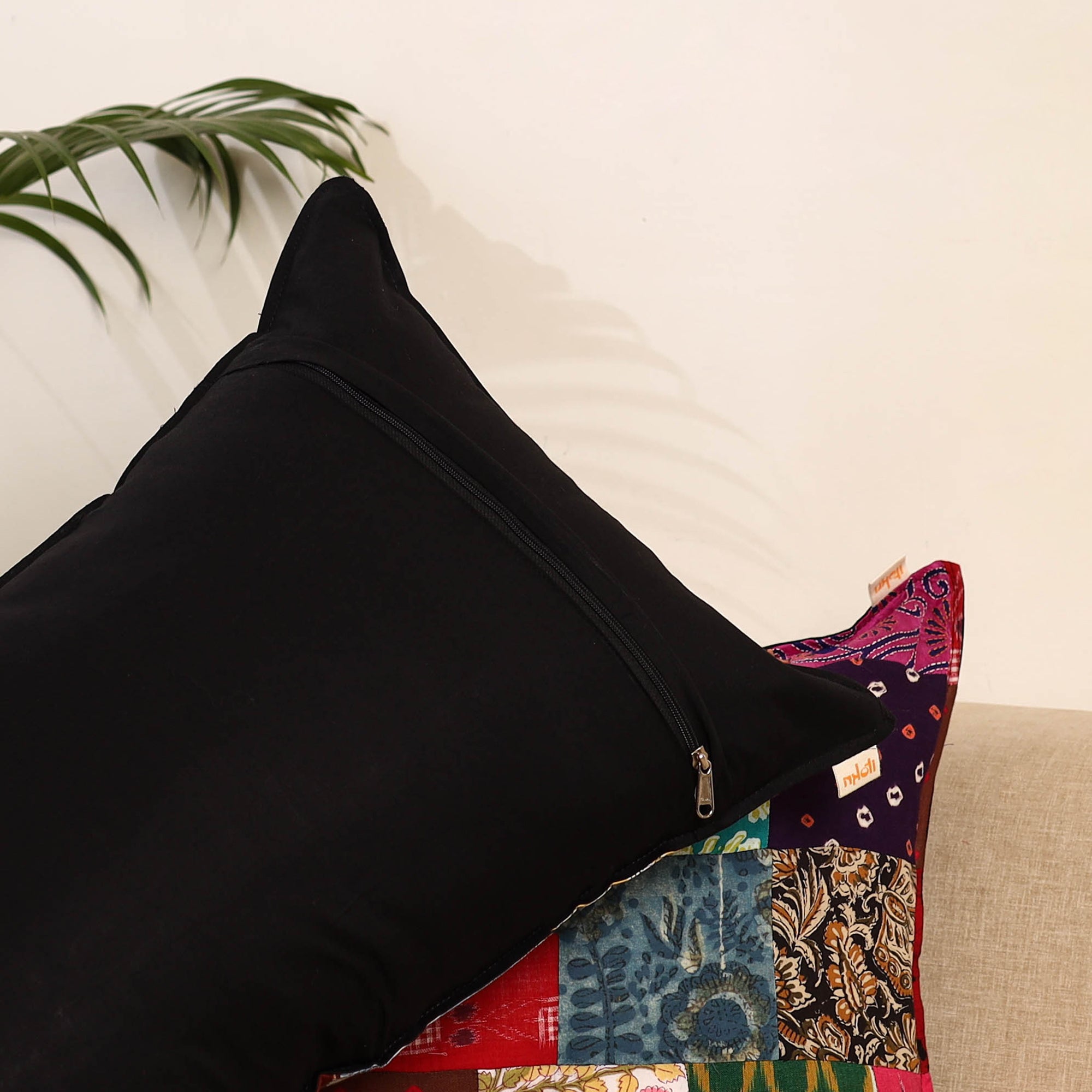 Set of 2 patchwork pillow covers is made from cotton and crafted by skilled artisans using traditional techniques. Each cover features vibrant patterns inspired by Indian textile art, making them perfect for enhancing the look of your sofa, bed or lounge corner.