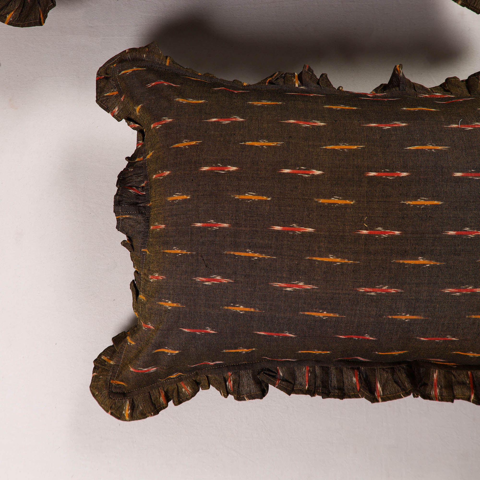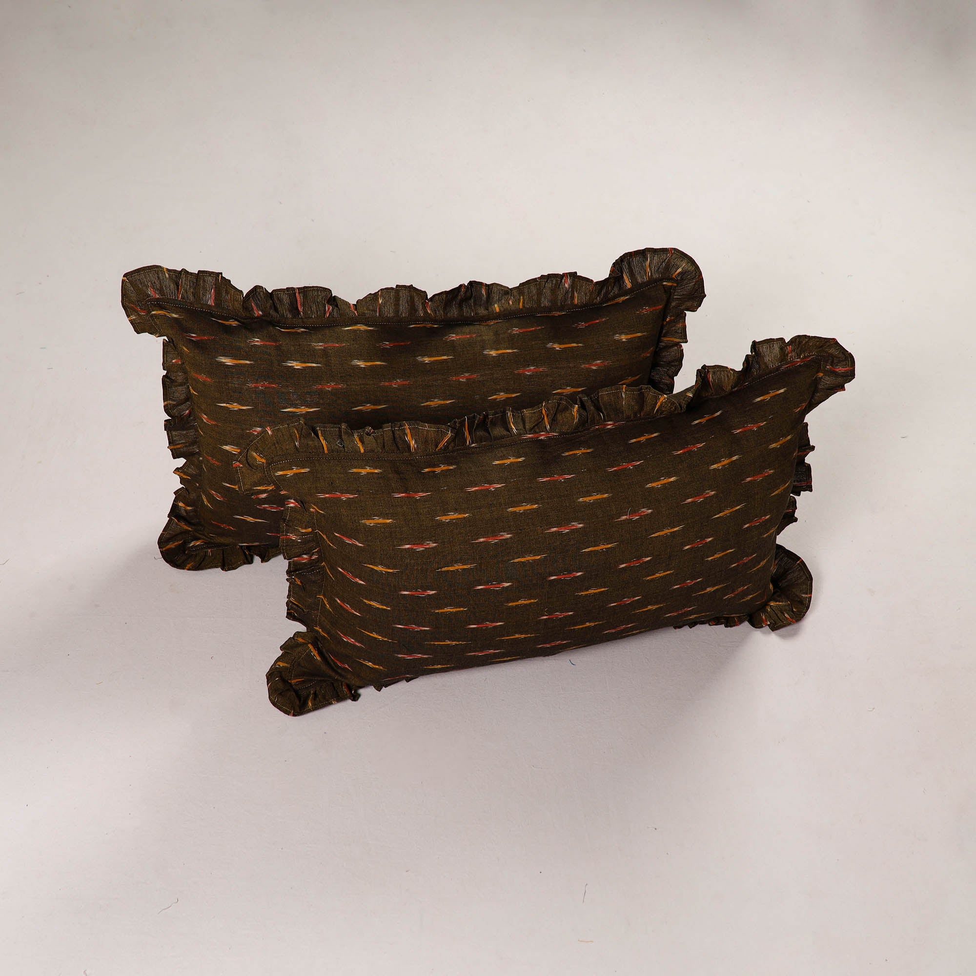 Enhance your home with our brown set of 2 pochampally ikat cotton frill pillow covers. Made by skilled artisans, these pillow covers bring a blend of traditional craftsmanship and modern. The cotton material is both durable and eco-friendly, perfect for adding a touch of style and sustainability to your living space & bedroom.
