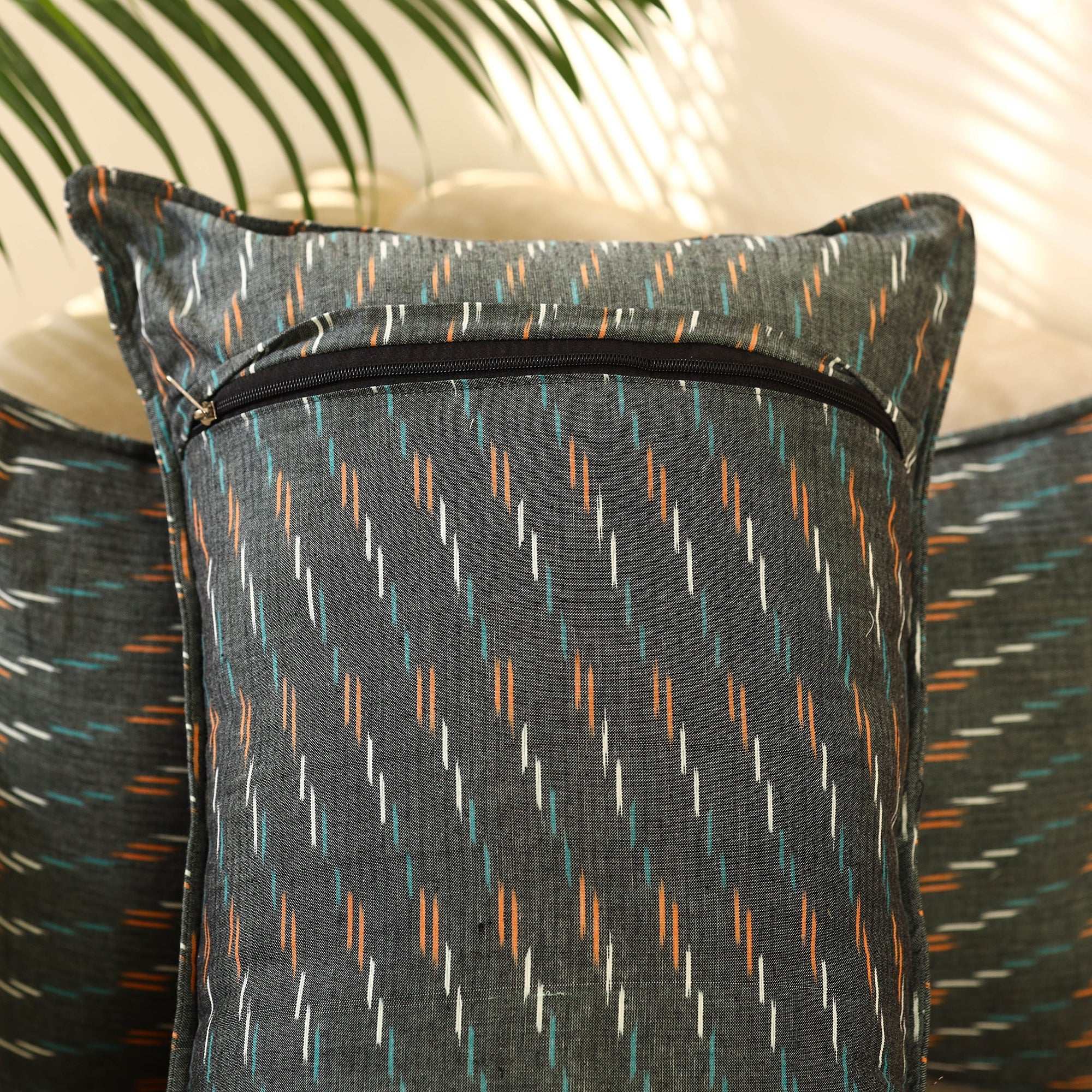 Elevate your home decor with this set of 2 grey pochampally Ikat cotton pillow covers. Crafted by skilled artisans, these covers blend traditional craftsmanship with a modern touch. The cotton fabric is both durable and eco friendly perfect for adding style and sustainability to your living room or bedroom.