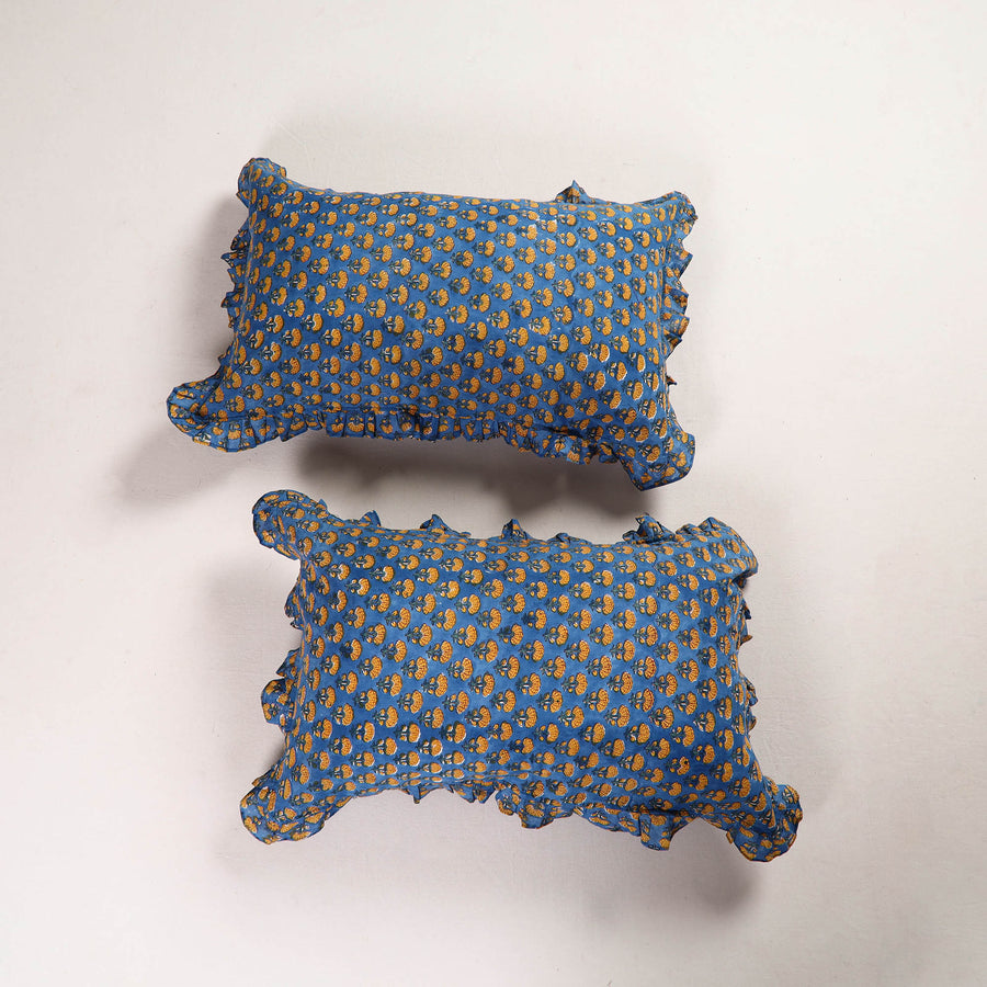 | Material | Enhance your home with our blue set of 2 sanganeri block print cotton frill pillow covers. Made by skilled artisans, these pillow covers bring a blend of traditional craftsmanship and modern. The cotton material is both durable and eco-friendly, perfect for adding a touch of style and sustainability to your living space & bedroom. |