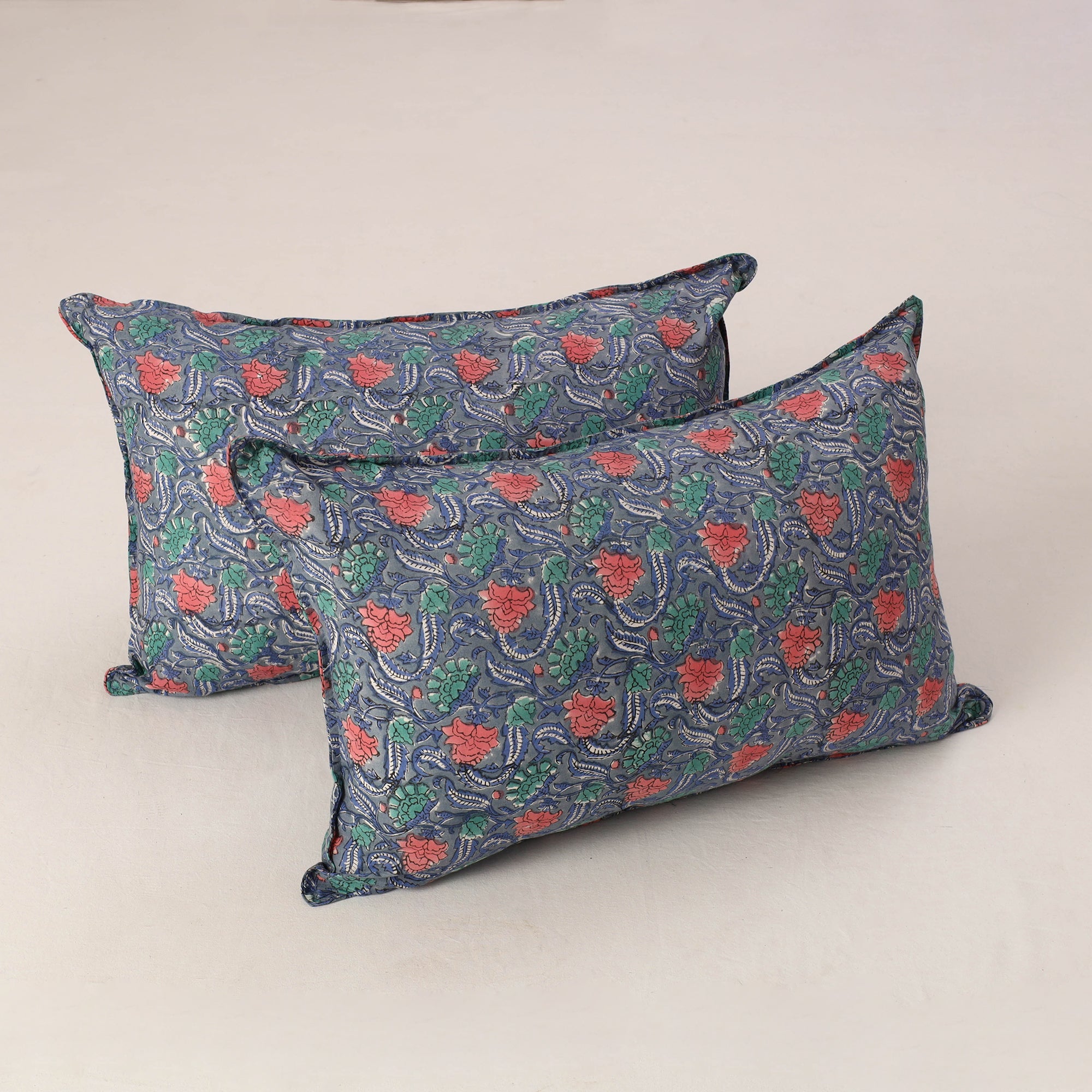 Set of 2 sanganeri grey block print cotton pillow covers. Made by skilled artisans, these pillow covers bring a blend of traditional craftsmanship and modern. The cotton material is both durable and eco-friendly, perfect for adding a touch of style and sustainability to your living space & bedroom.